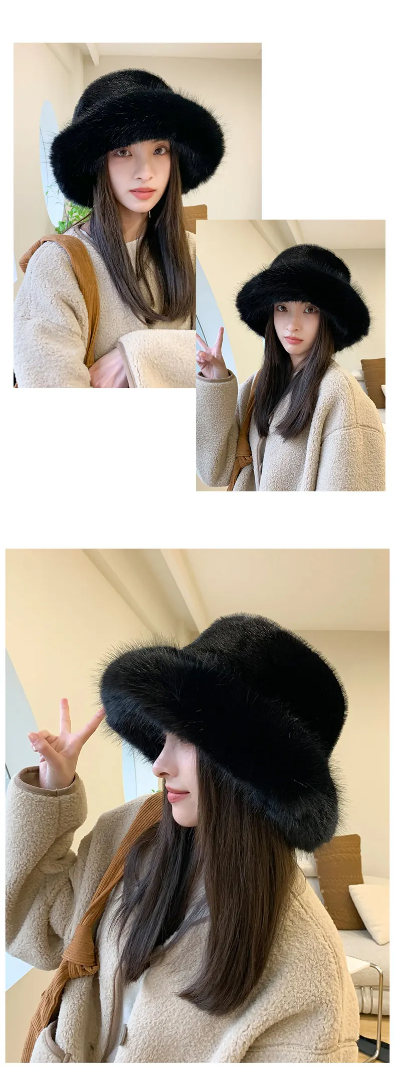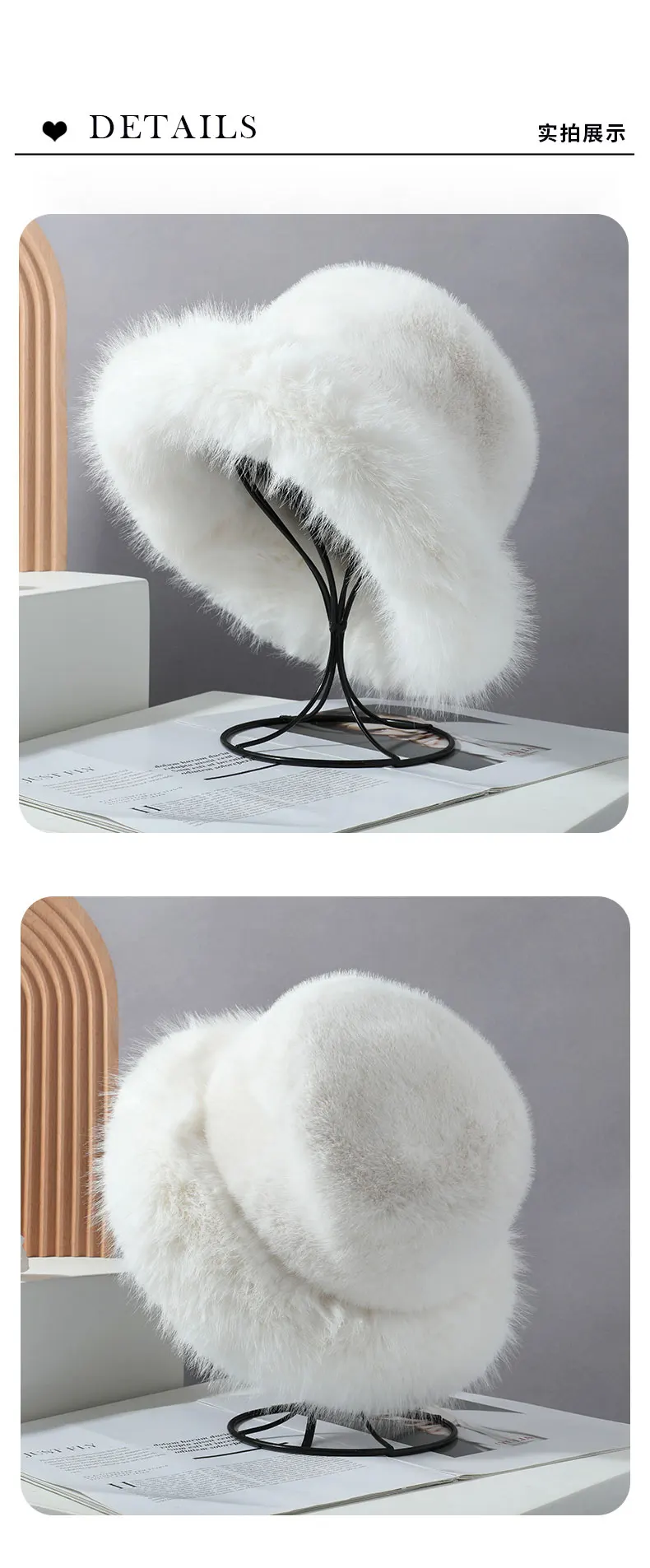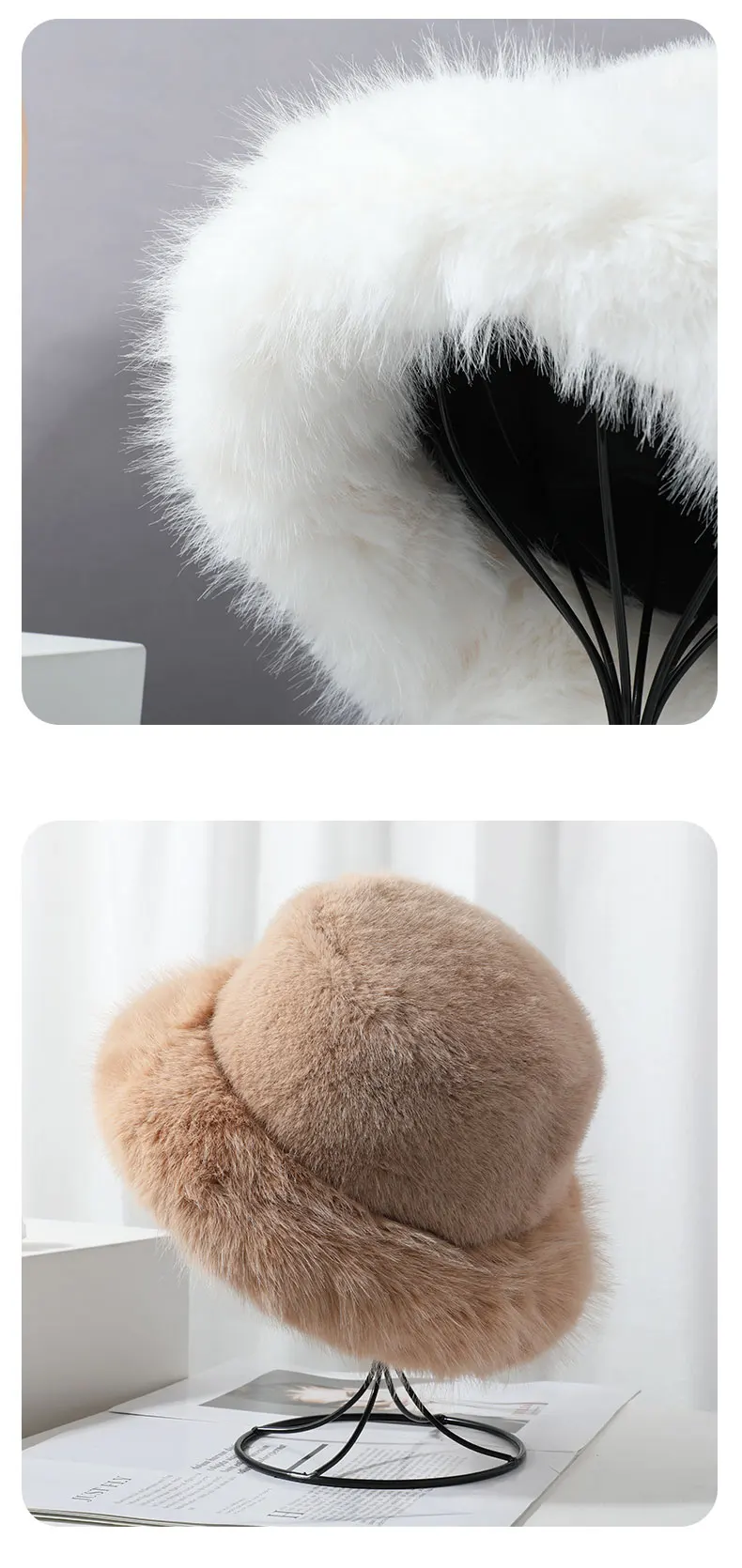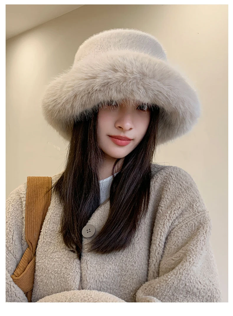 2024 Big Fluffy Faux Fur Bucket Hat for Women Luxury Plush Fisherman Hat Warm Winter Hat Thicken Cold Snowy Day Panama Cap