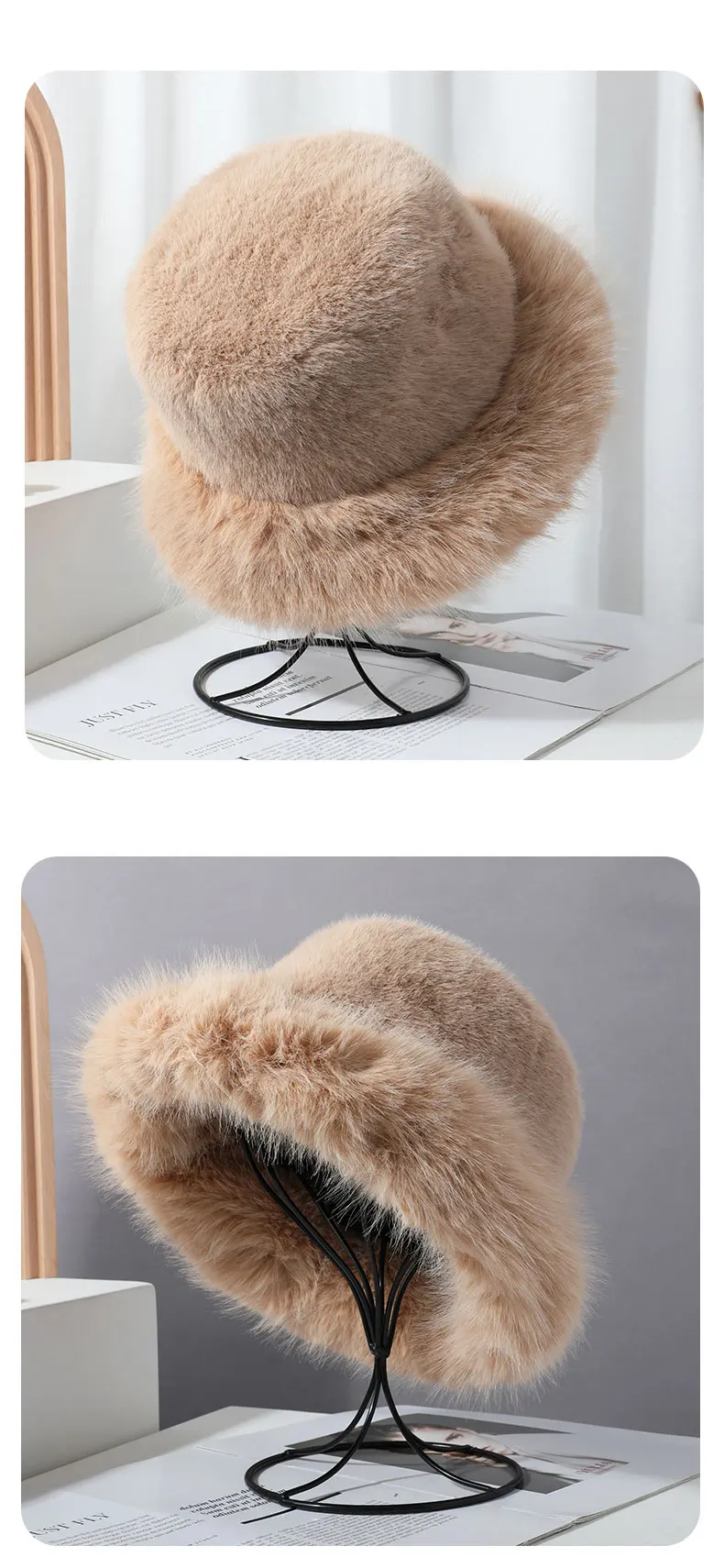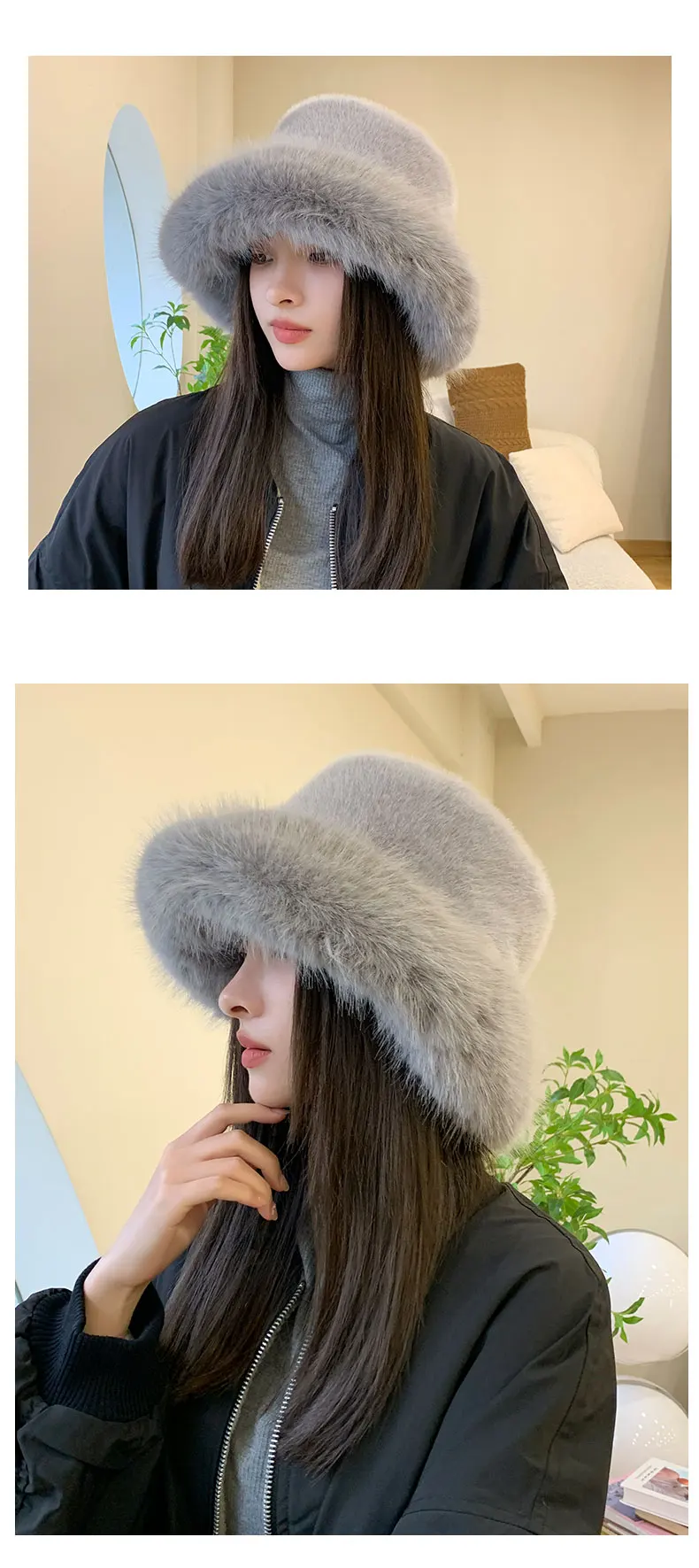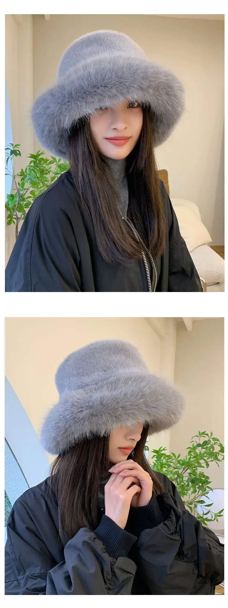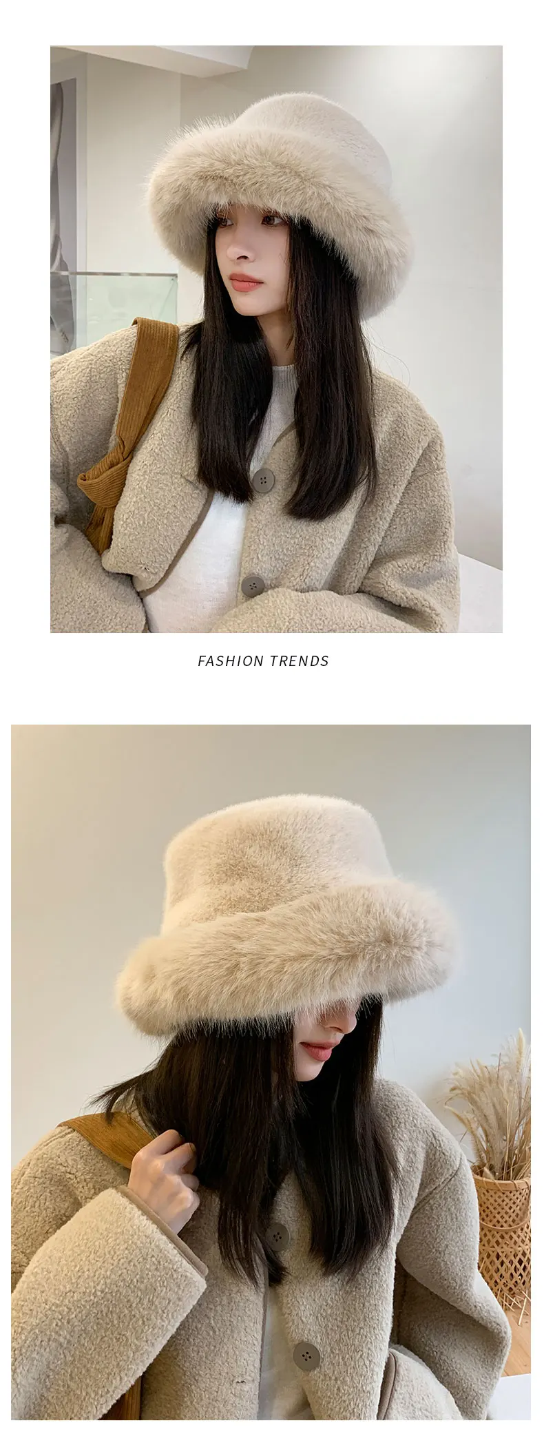2024 Big Fluffy Faux Fur Bucket Hat for Women Luxury Plush Fisherman Hat Warm Winter Hat Thicken Cold Snowy Day Panama Cap