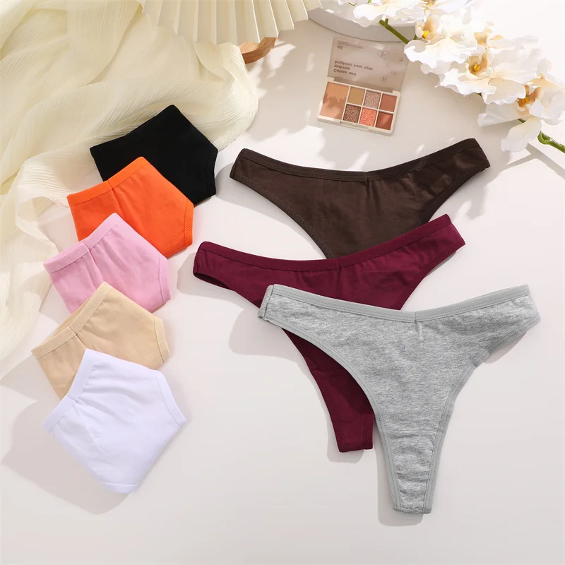 4PCS/Set Women Cotton Panties Seamless Low Rise Thongs V-Waist Solid Color Breathable Underwear Female Soft Lingerie Intimates