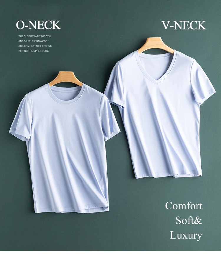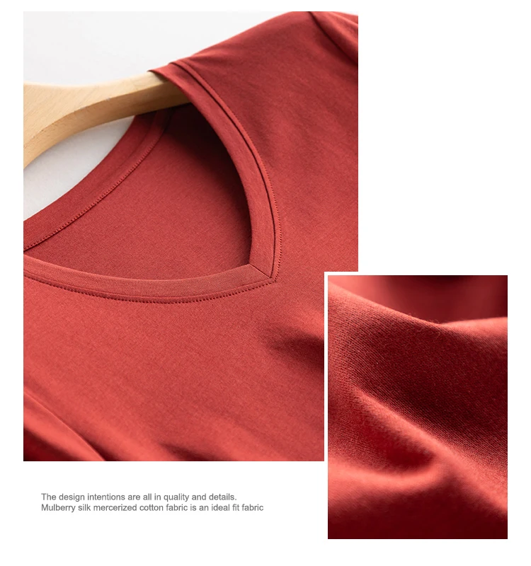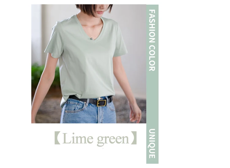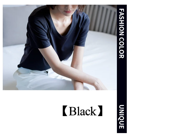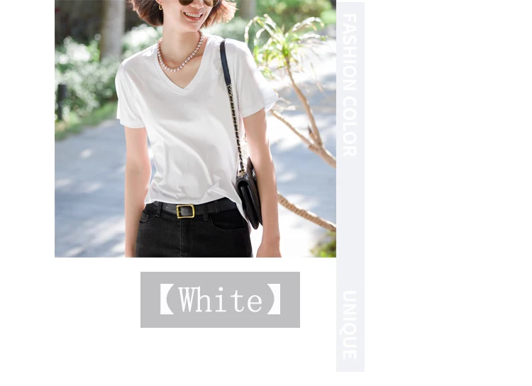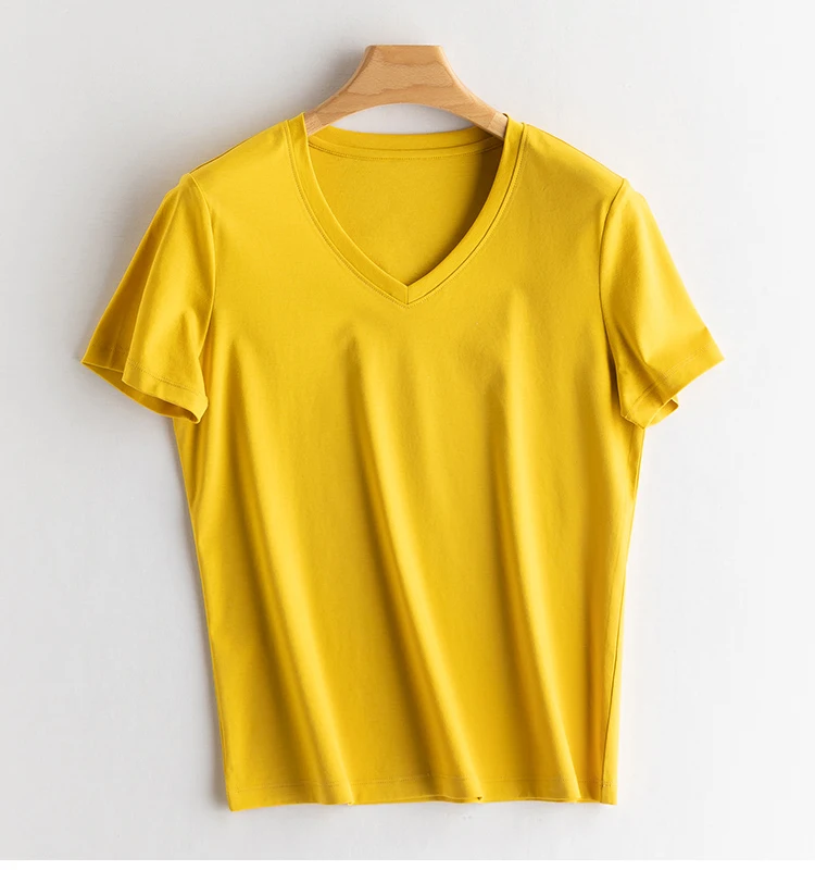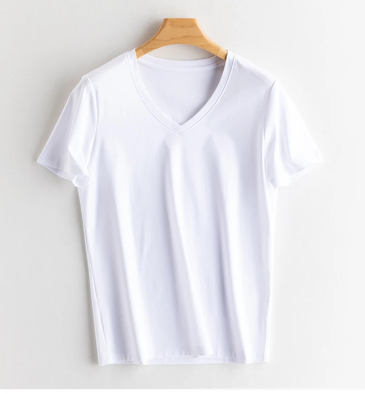 6% echte Seide Baumwolle modale Frauen T-Shirt Sommer T-Shirts Kurzarm solide T-Shirts V-Ausschnitt lässig Frau Basic T-Shirt Tops