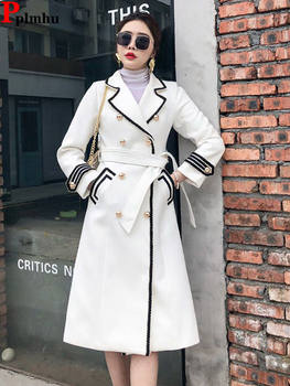 British Thick Warm Woolen Solid Chaquetas Fall Winter Women Temperament Elegant Overcoat Coats High-grade White Jaqueta Feminina