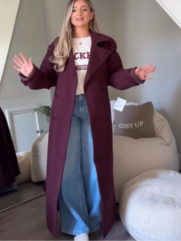 Vintage Collar Wine Red Women’s Woolen Coat Elegant Double Breasted Long Sleeve Outerwear Autumn New High Street Lady Long Coats