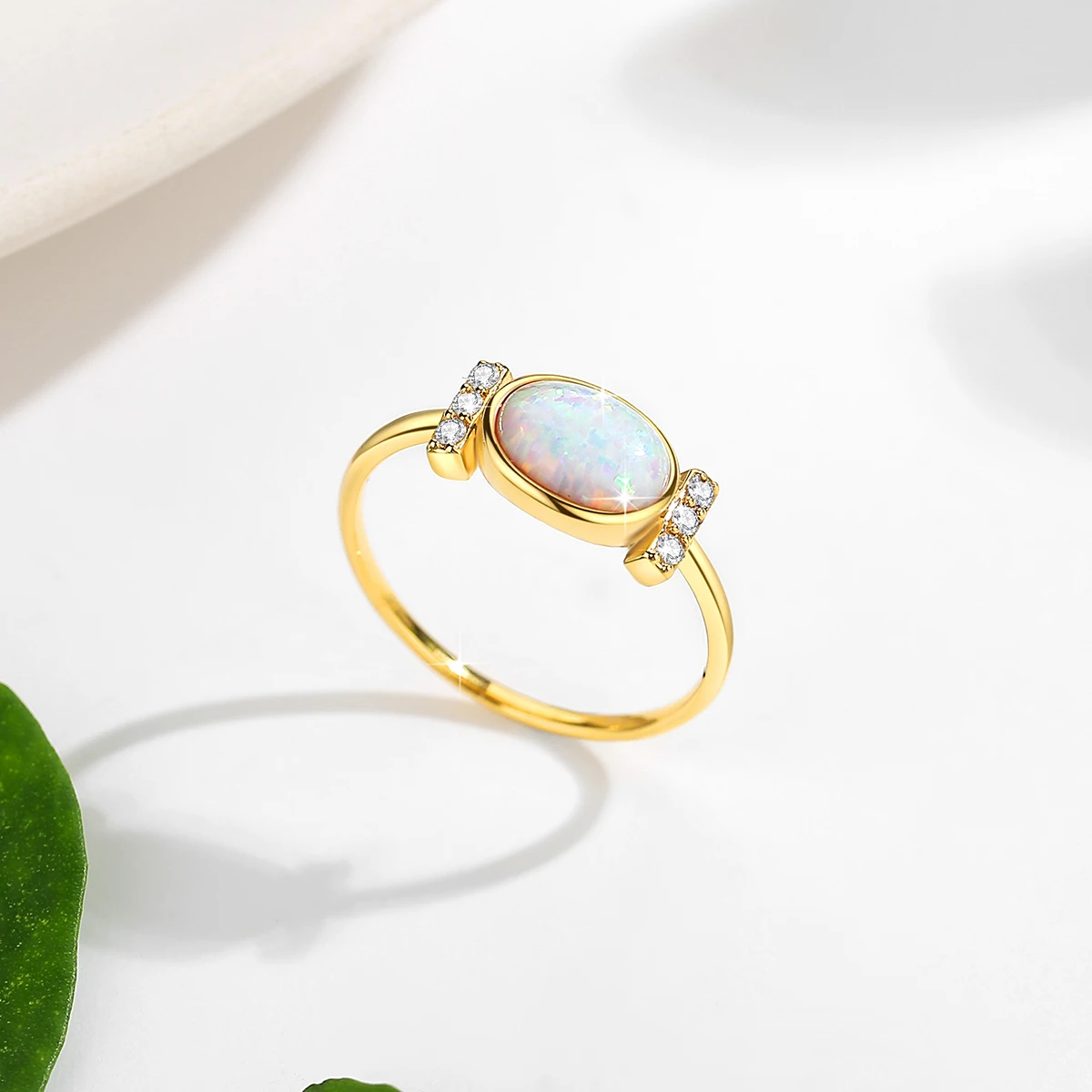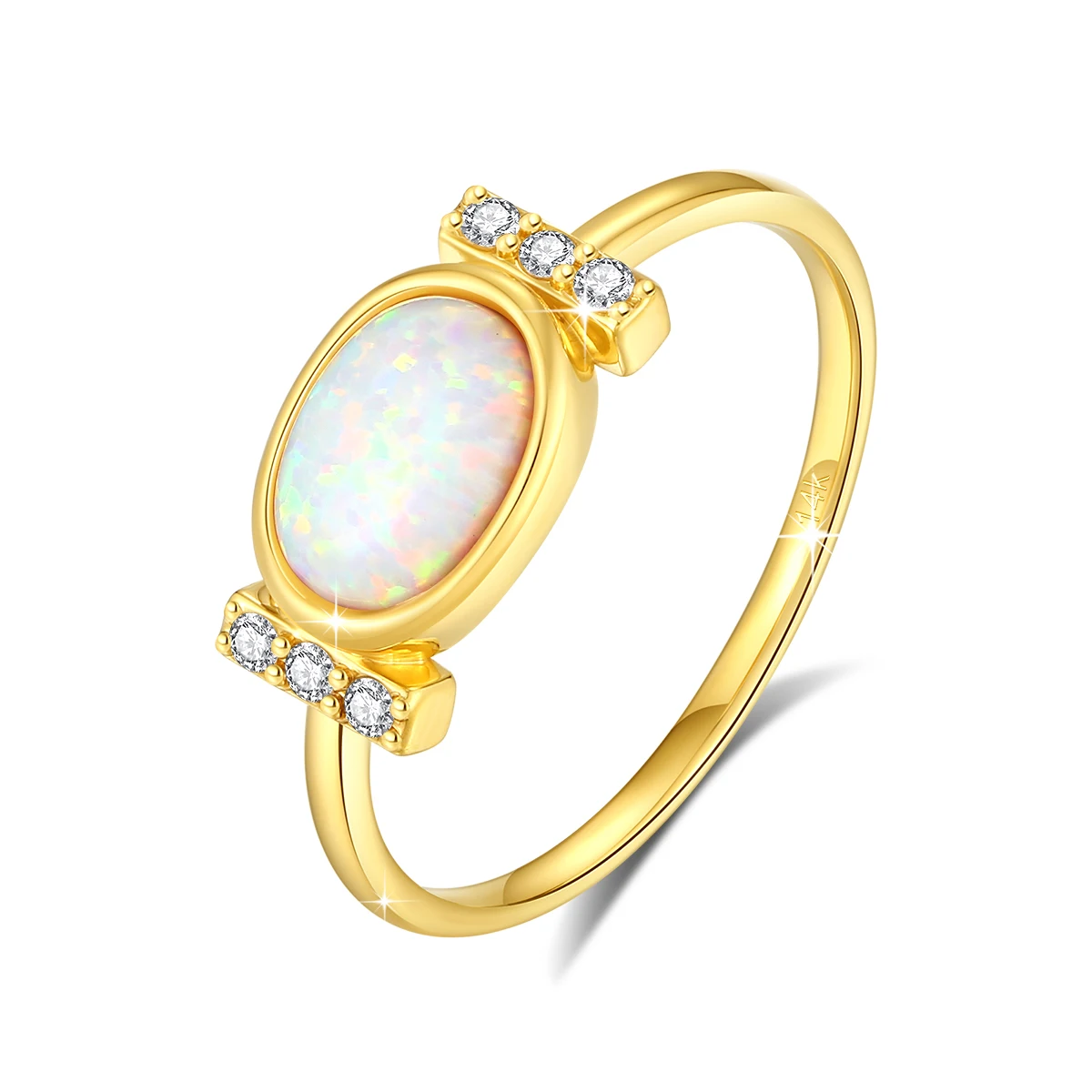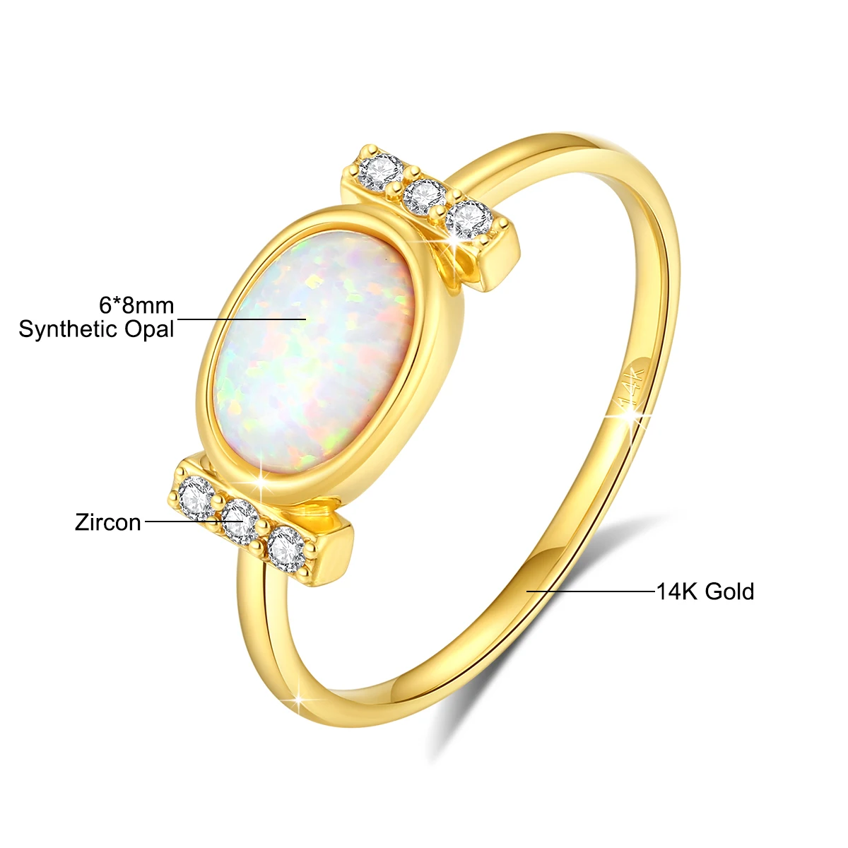 Luxury Designer Opal Rings 14k Gold 100% Real Women Oval 6*8mm Stone Marriage Trend High Quality Fine Jewelry Gift Female Sale