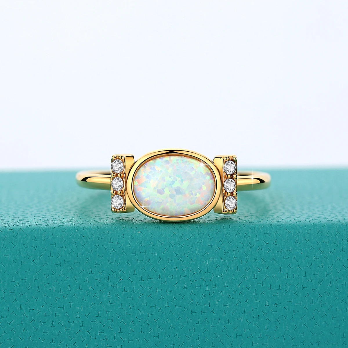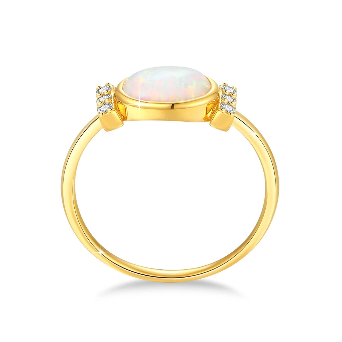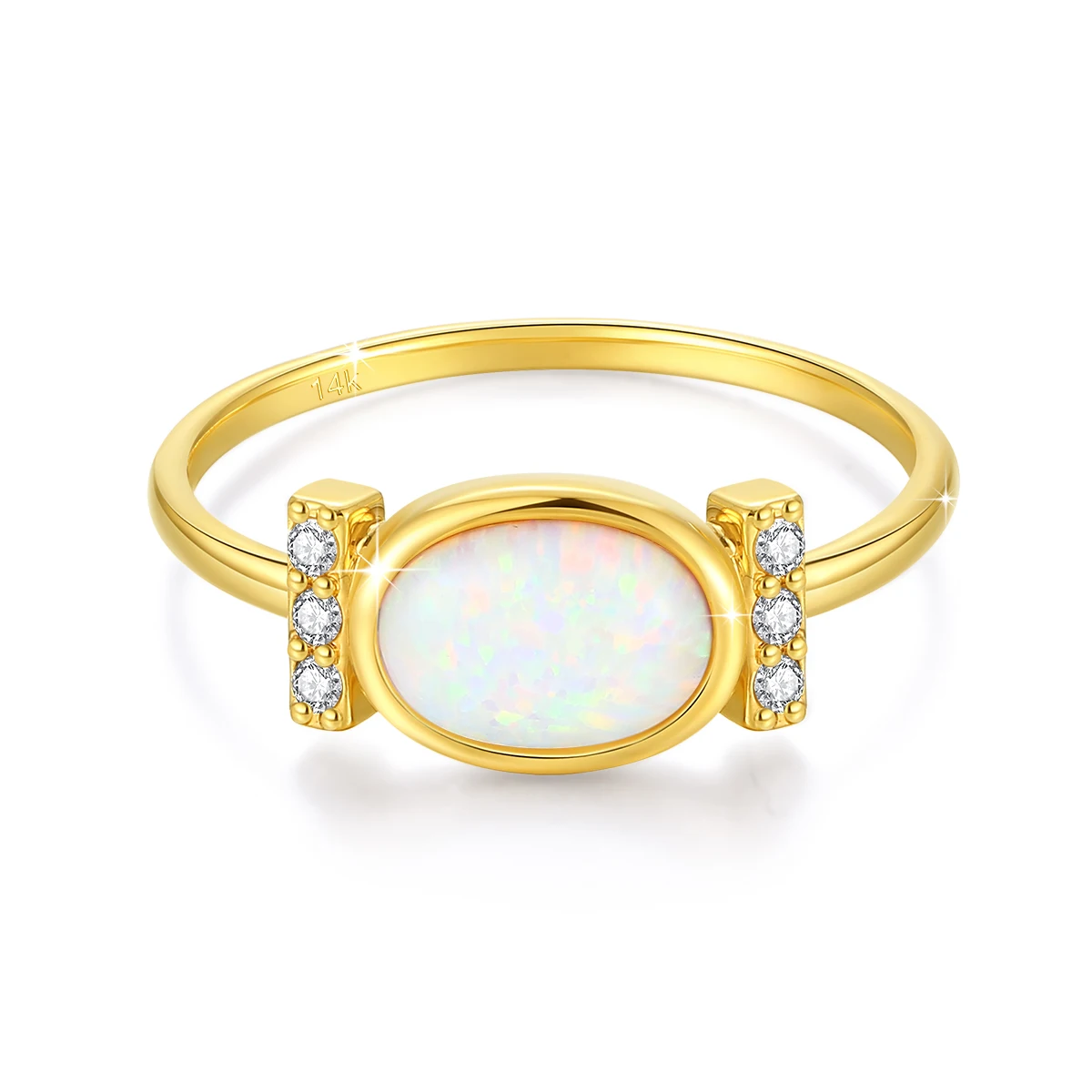 Luxury Designer Opal Rings 14k Gold 100% Real Women Oval 6*8mm Stone Marriage Trend High Quality Fine Jewelry Gift Female Sale