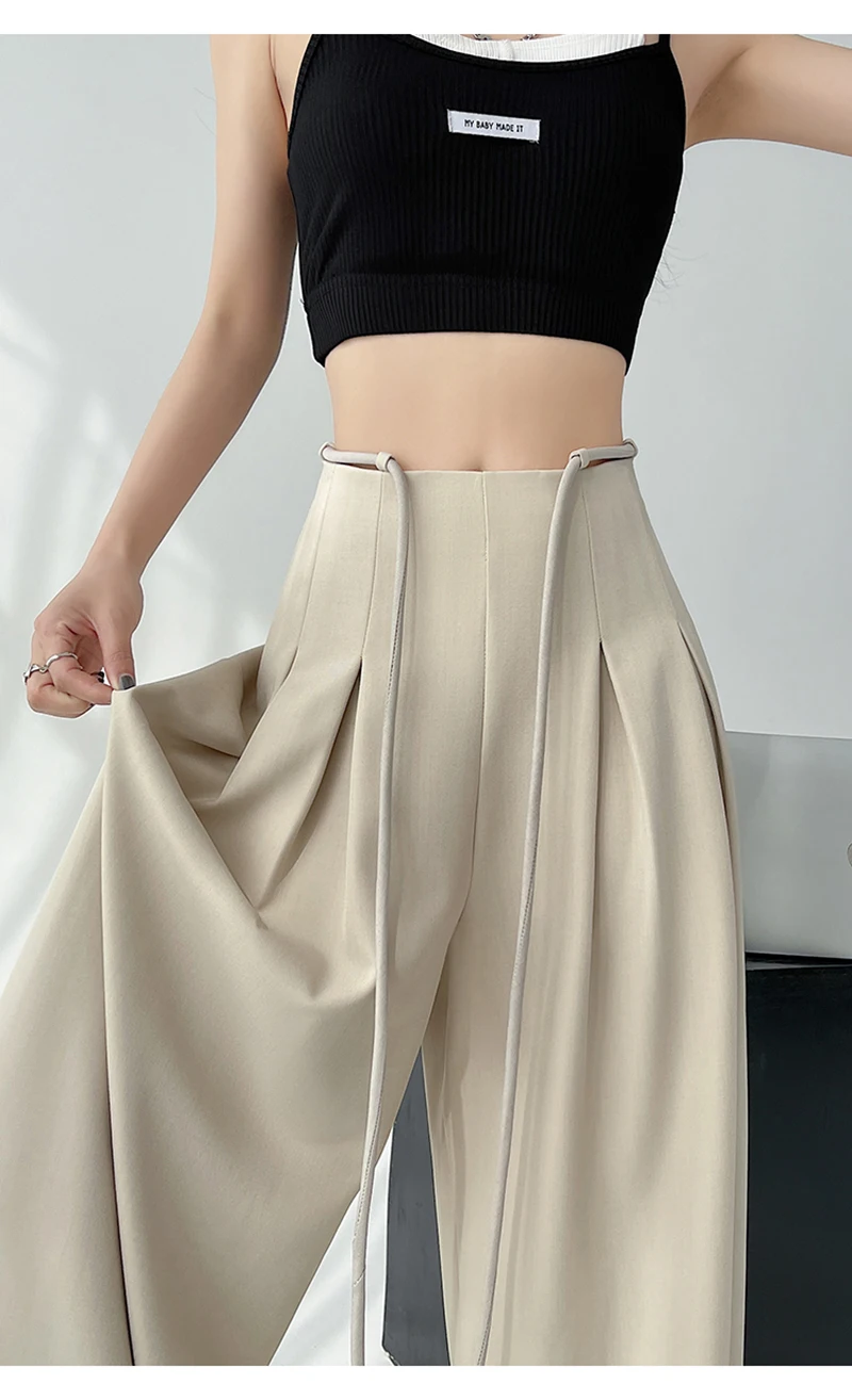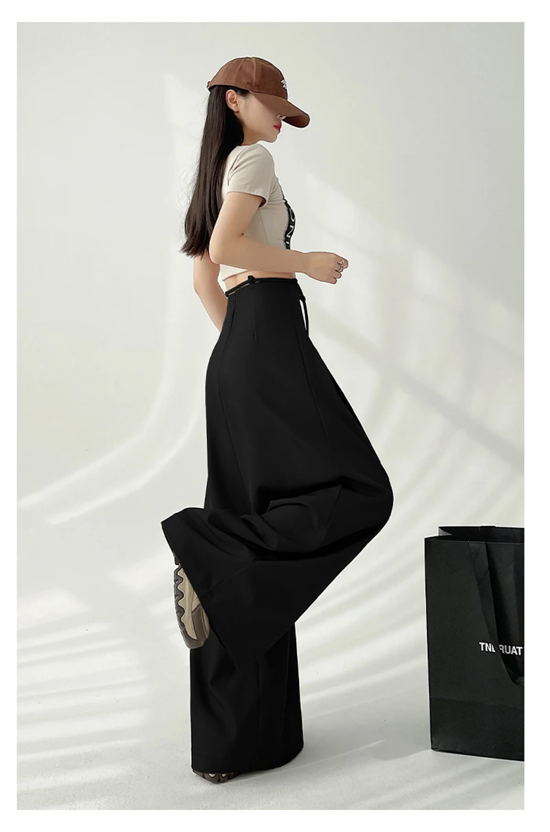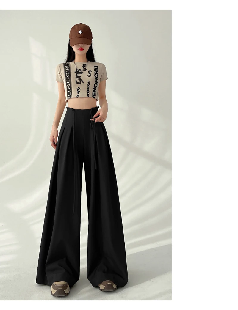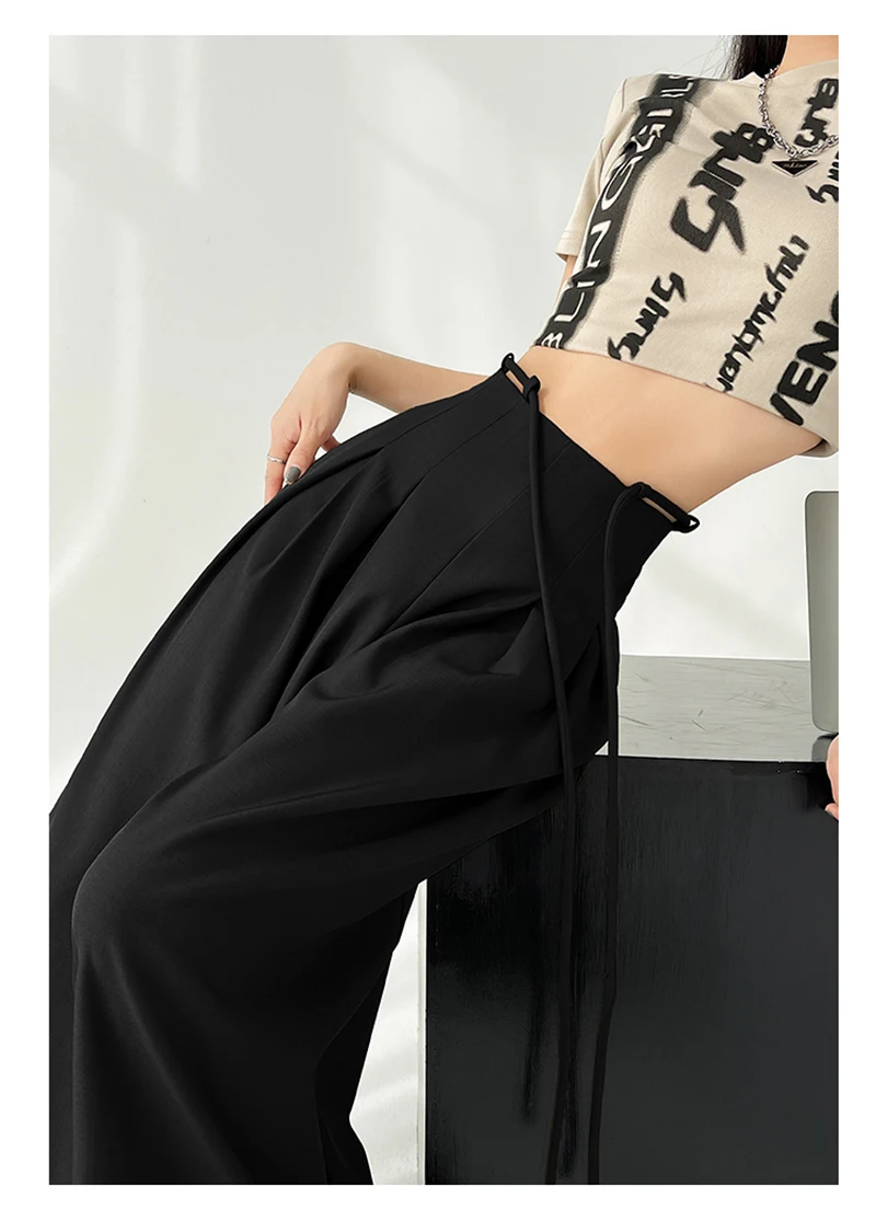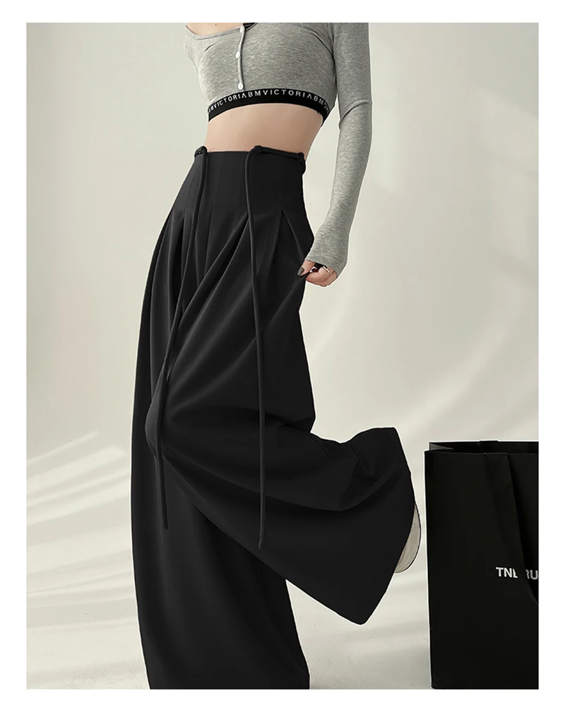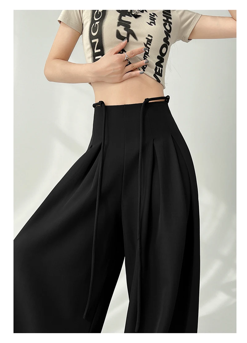 MEXZT Streetwear Wide Leg Pants Women Korean Black High Waist Suit Pants Summer Fashion Elegant Lace Up Straight Trousers New