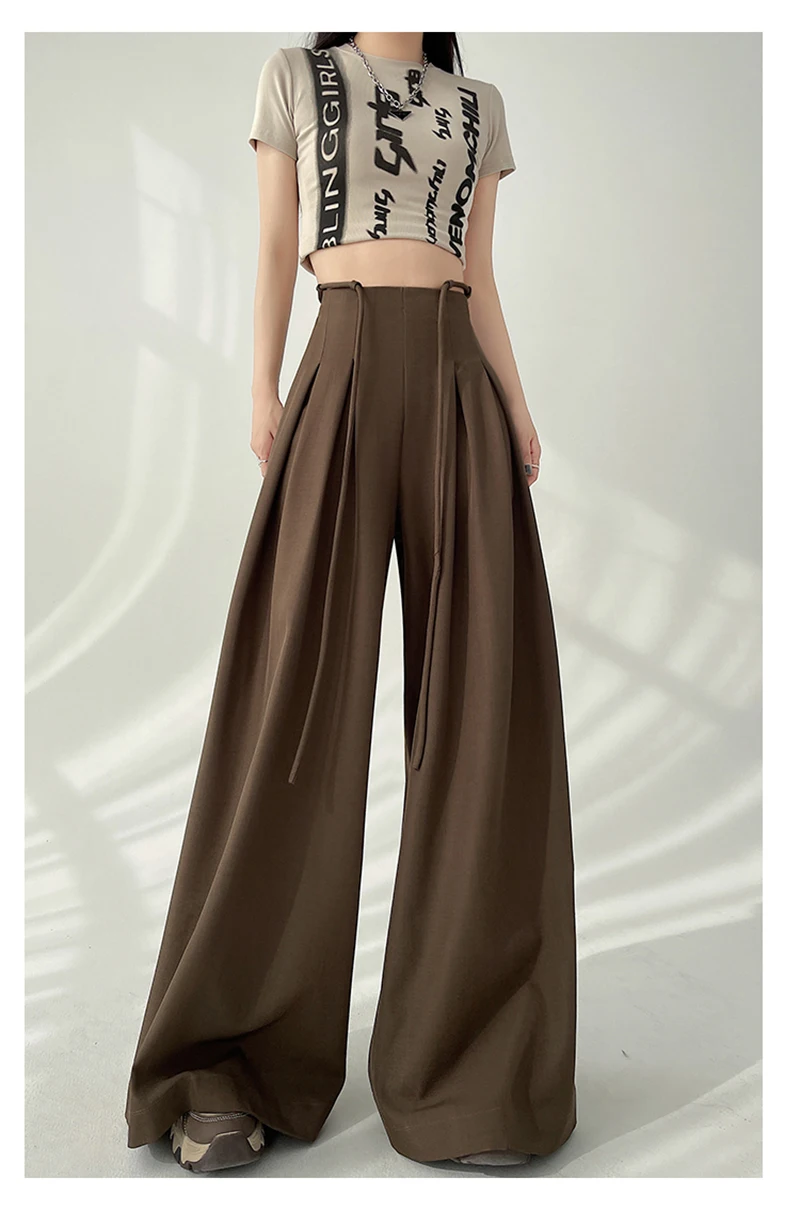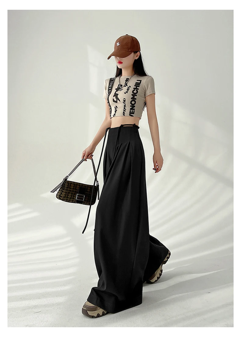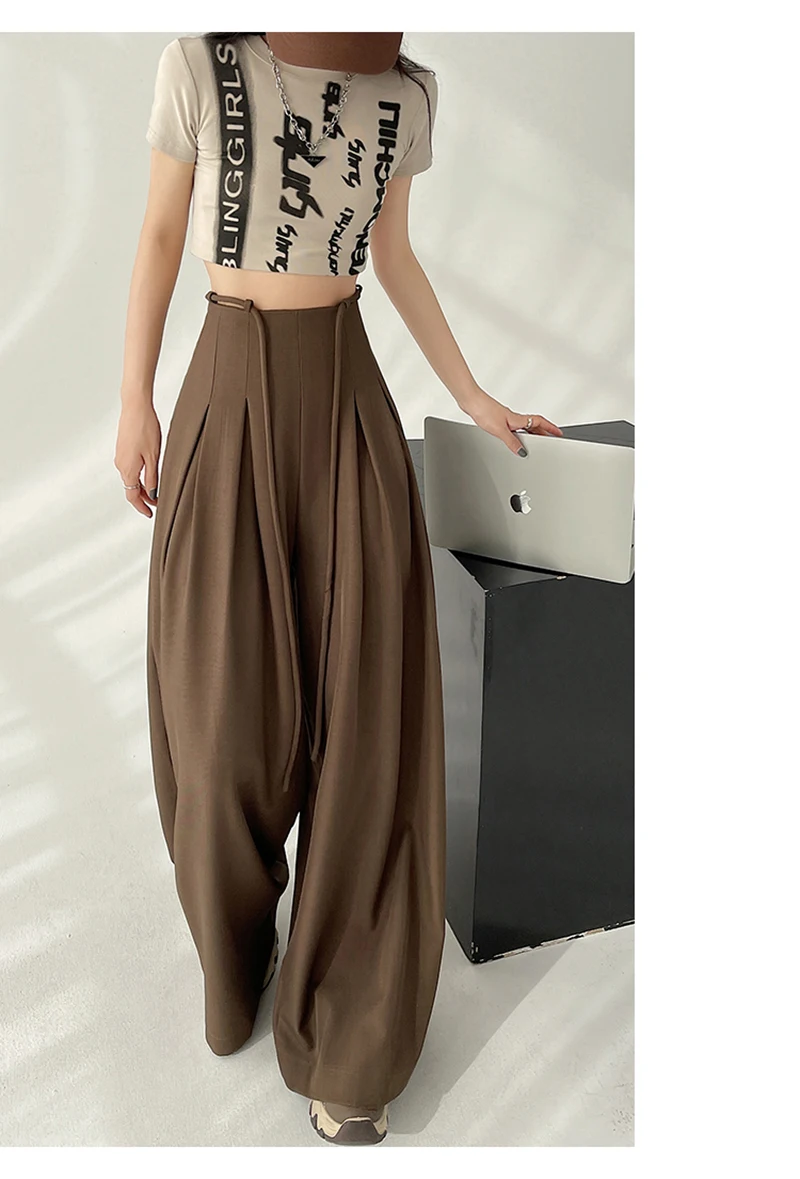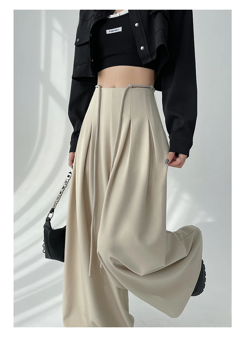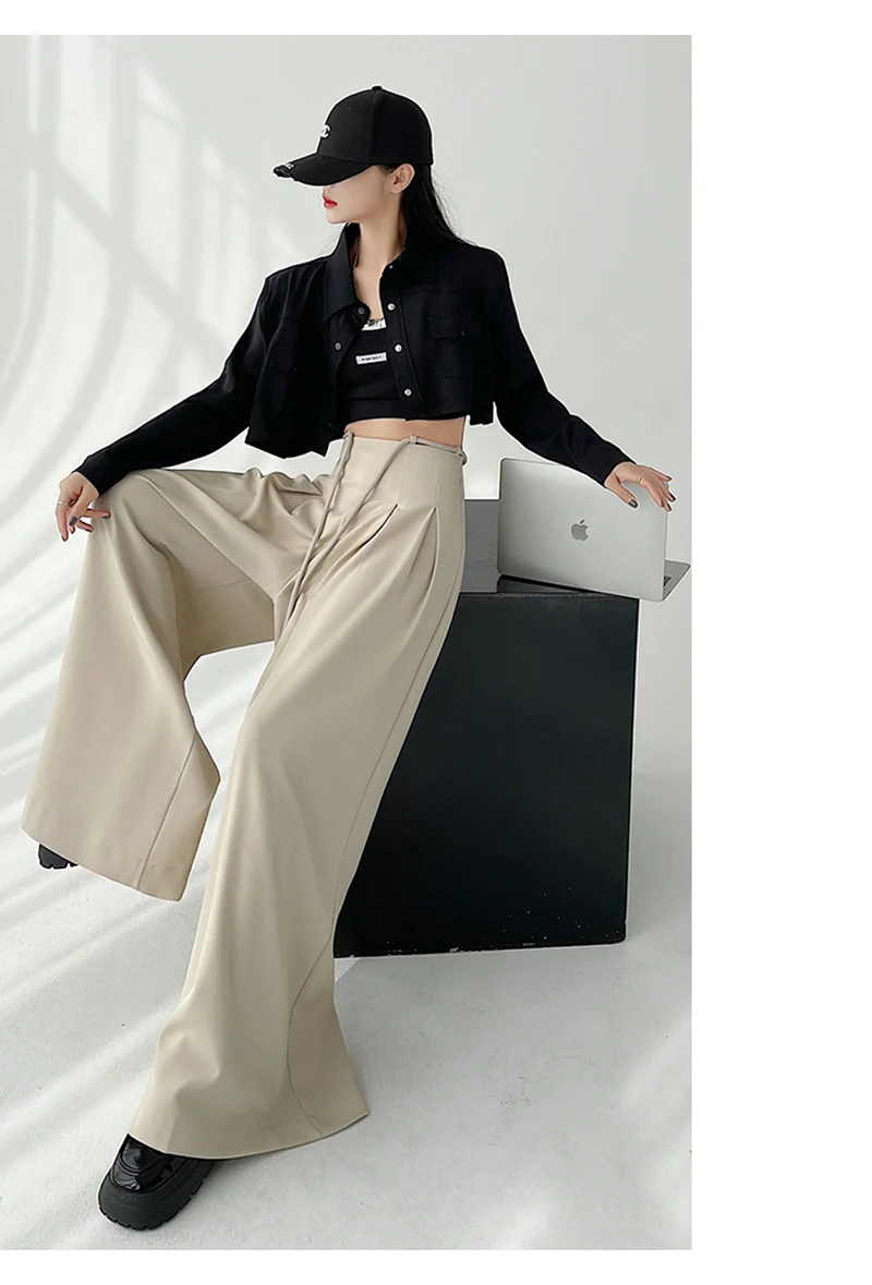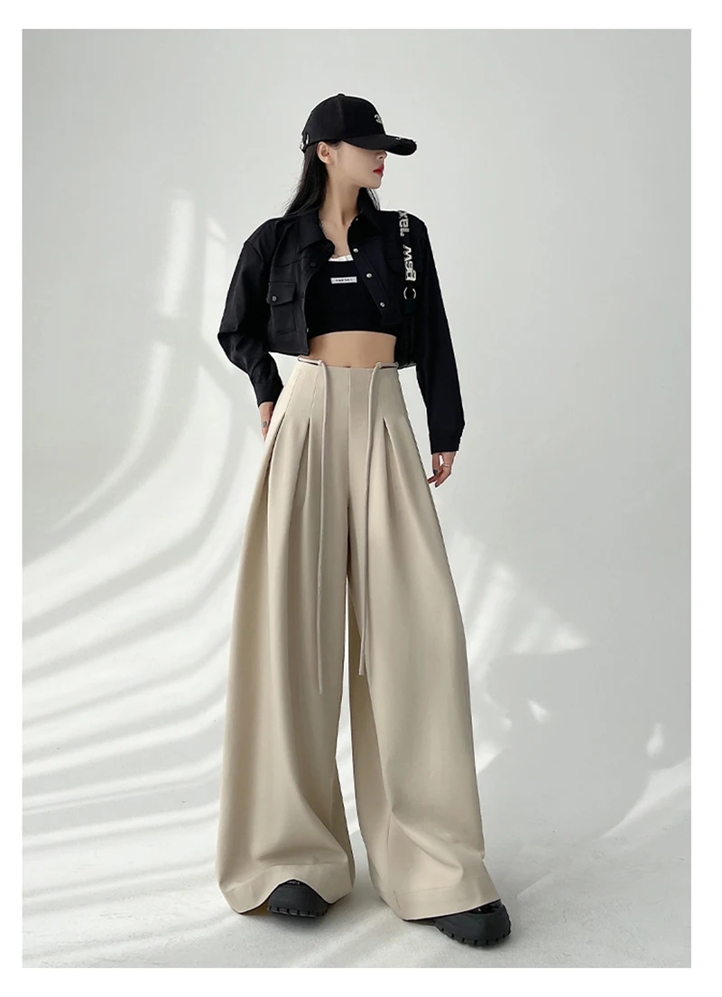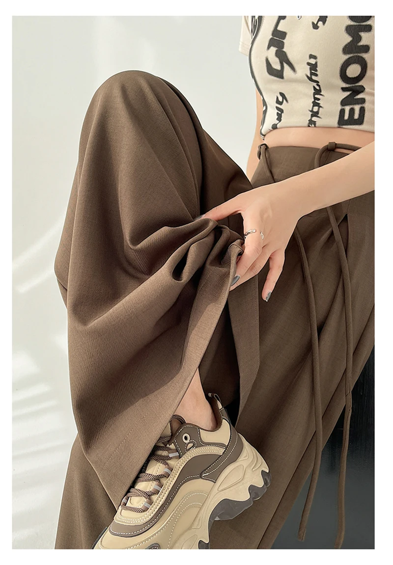 MEXZT Streetwear Wide Leg Pants Women Korean Black High Waist Suit Pants Summer Fashion Elegant Lace Up Straight Trousers New