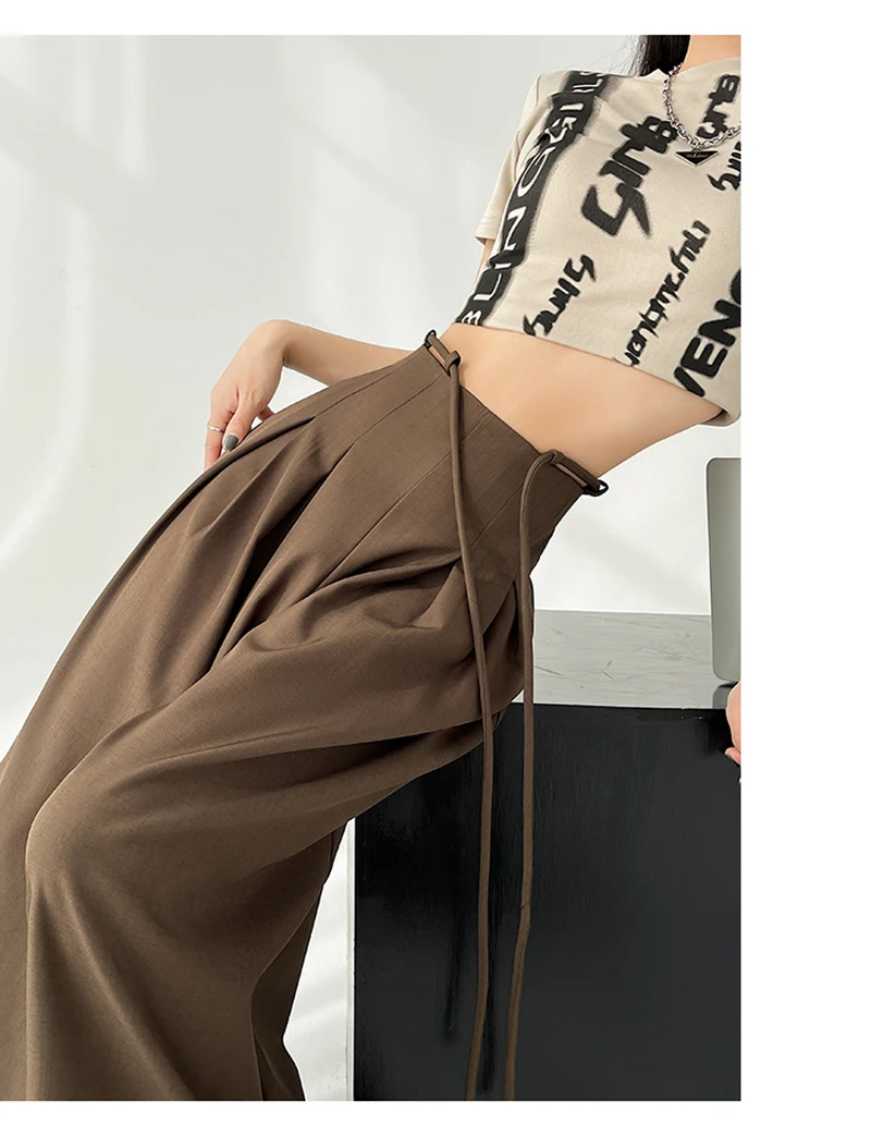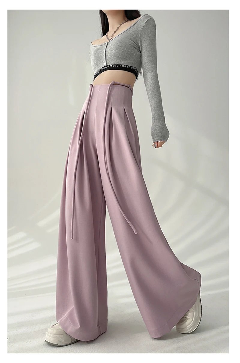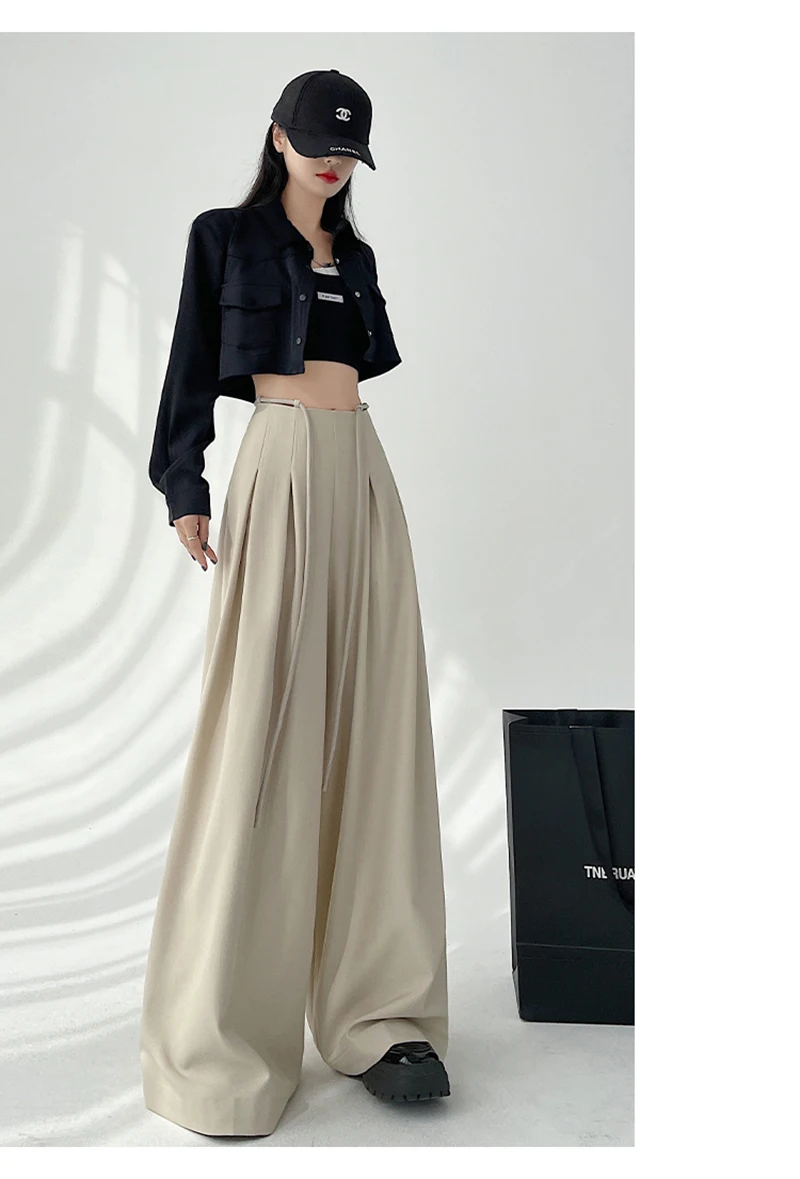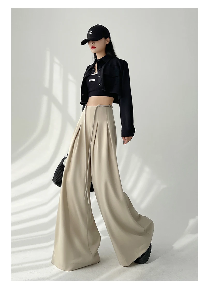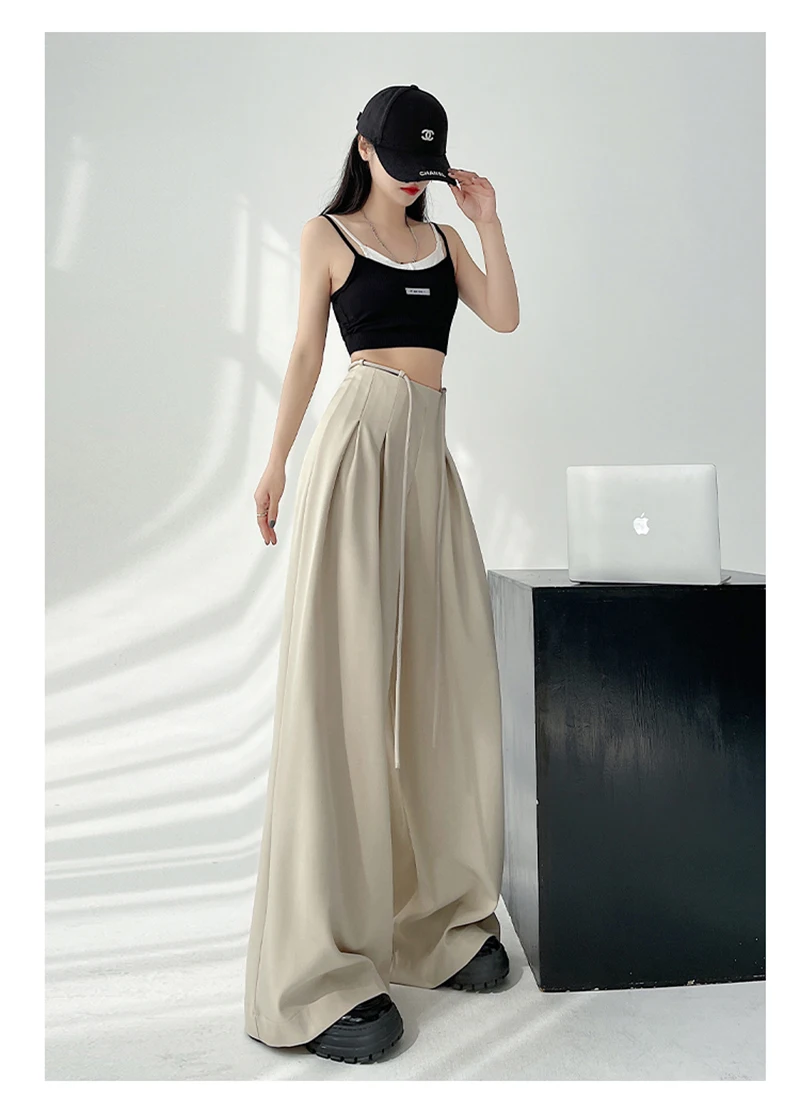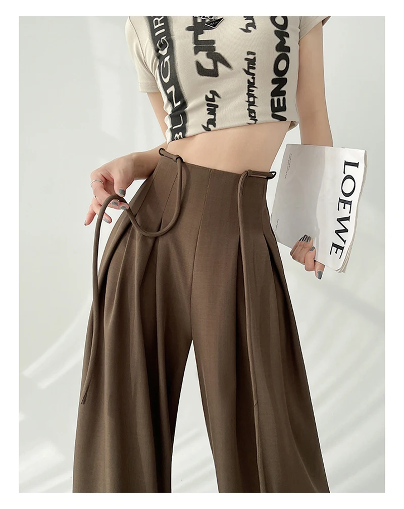 MEXZT Streetwear Wide Leg Pants Women Korean Black High Waist Suit Pants Summer Fashion Elegant Lace Up Straight Trousers New