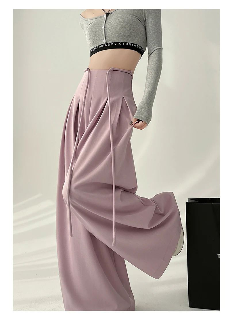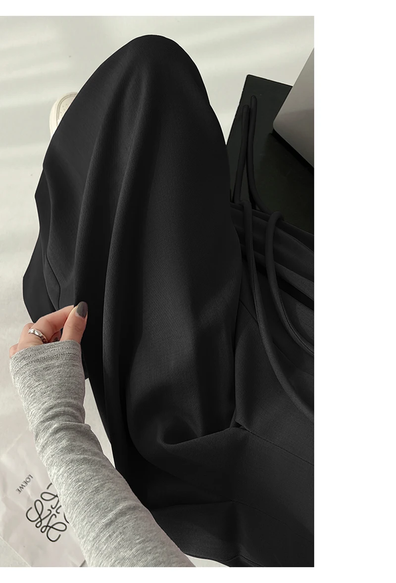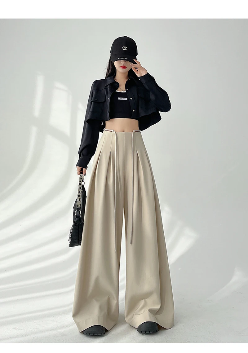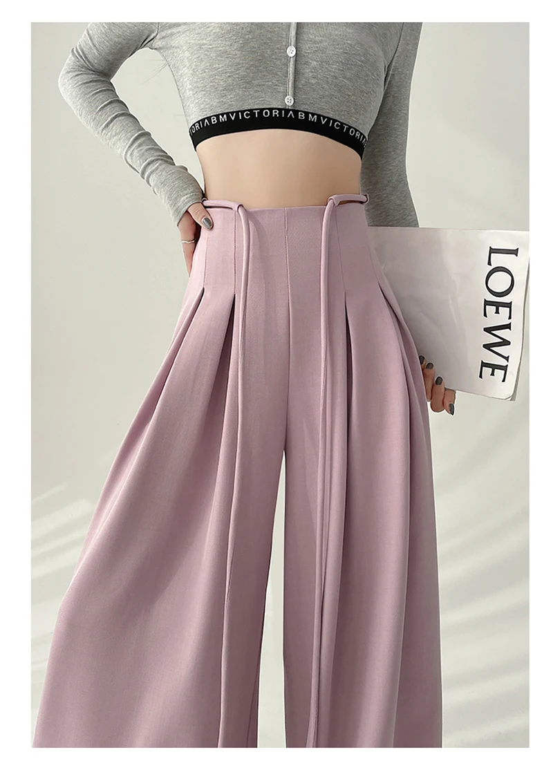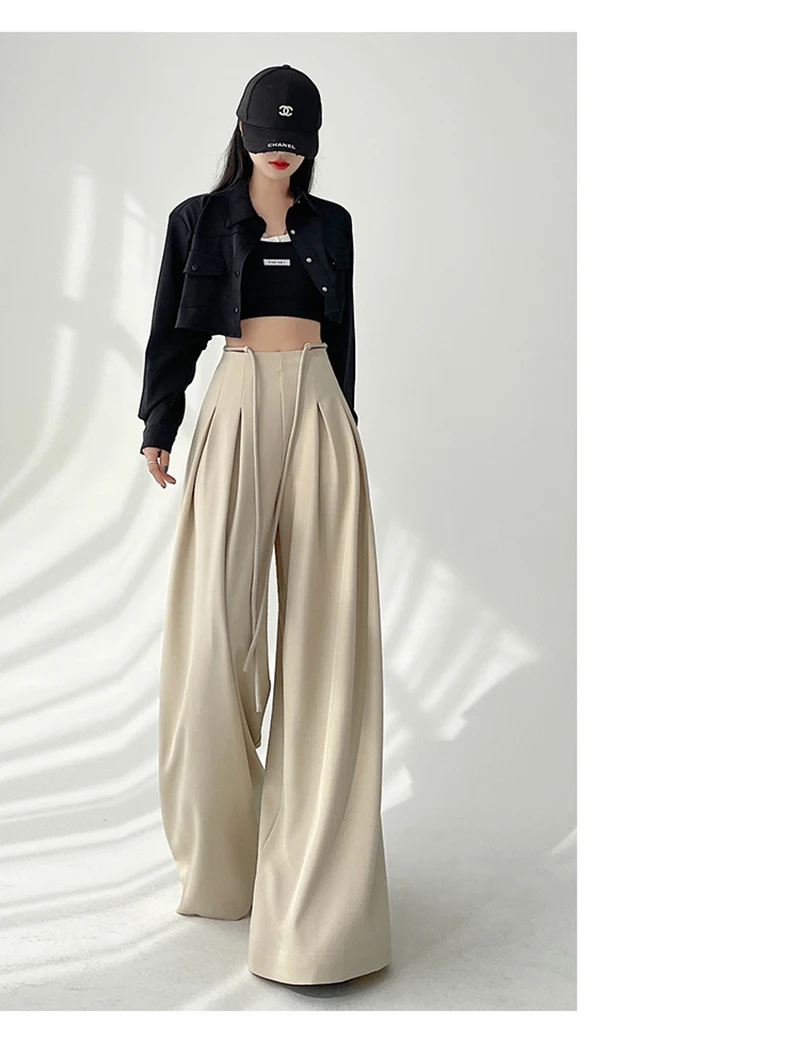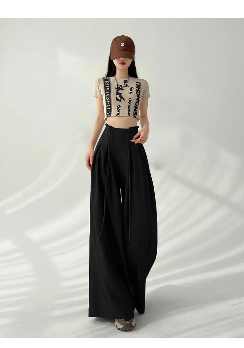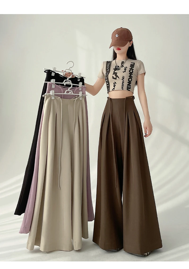 MEXZT Streetwear Wide Leg Pants Women Korean Black High Waist Suit Pants Summer Fashion Elegant Lace Up Straight Trousers New