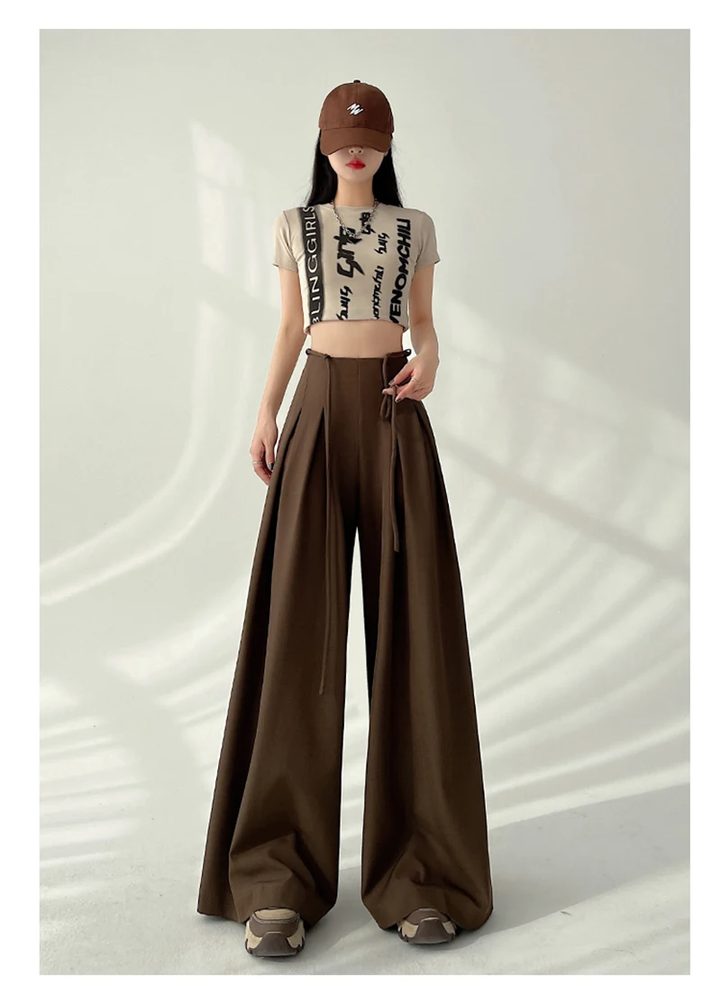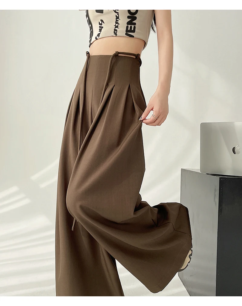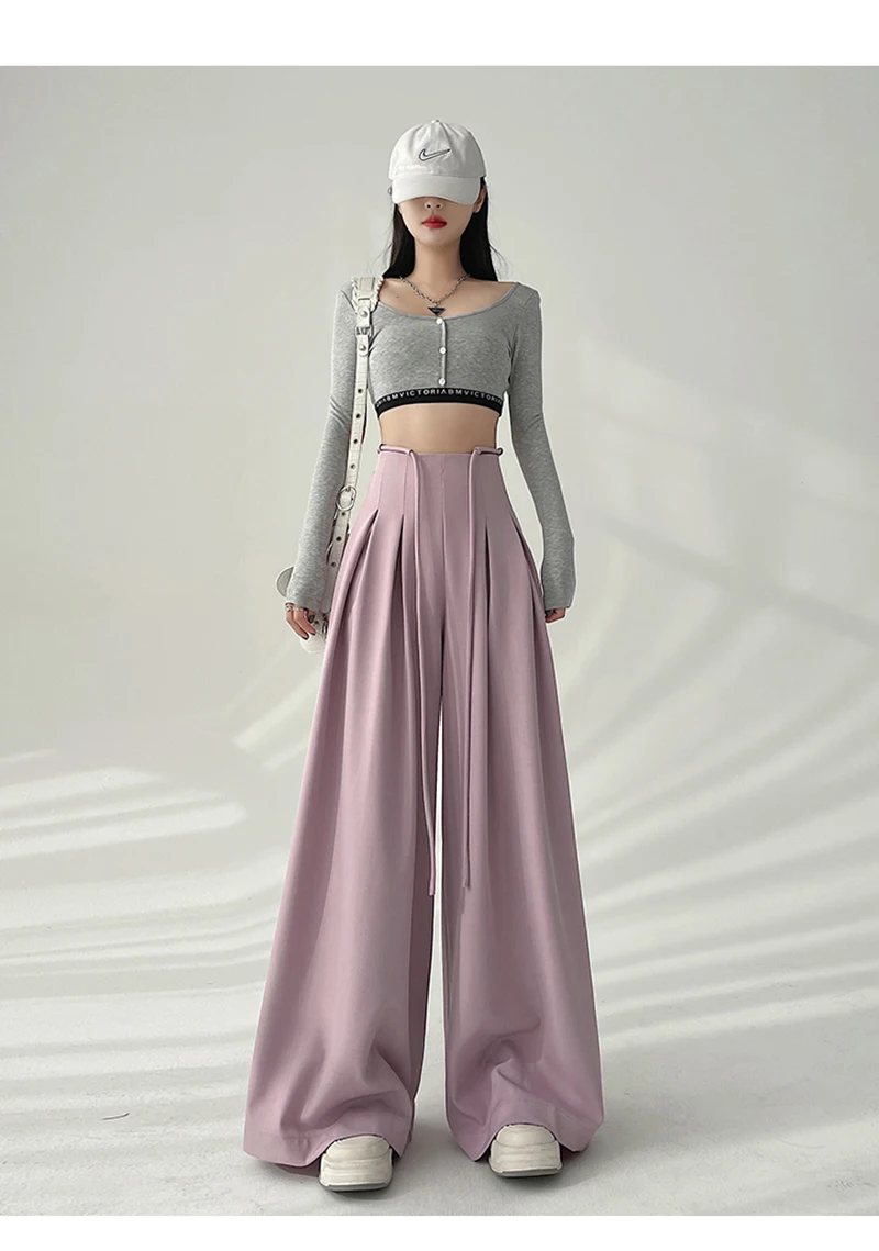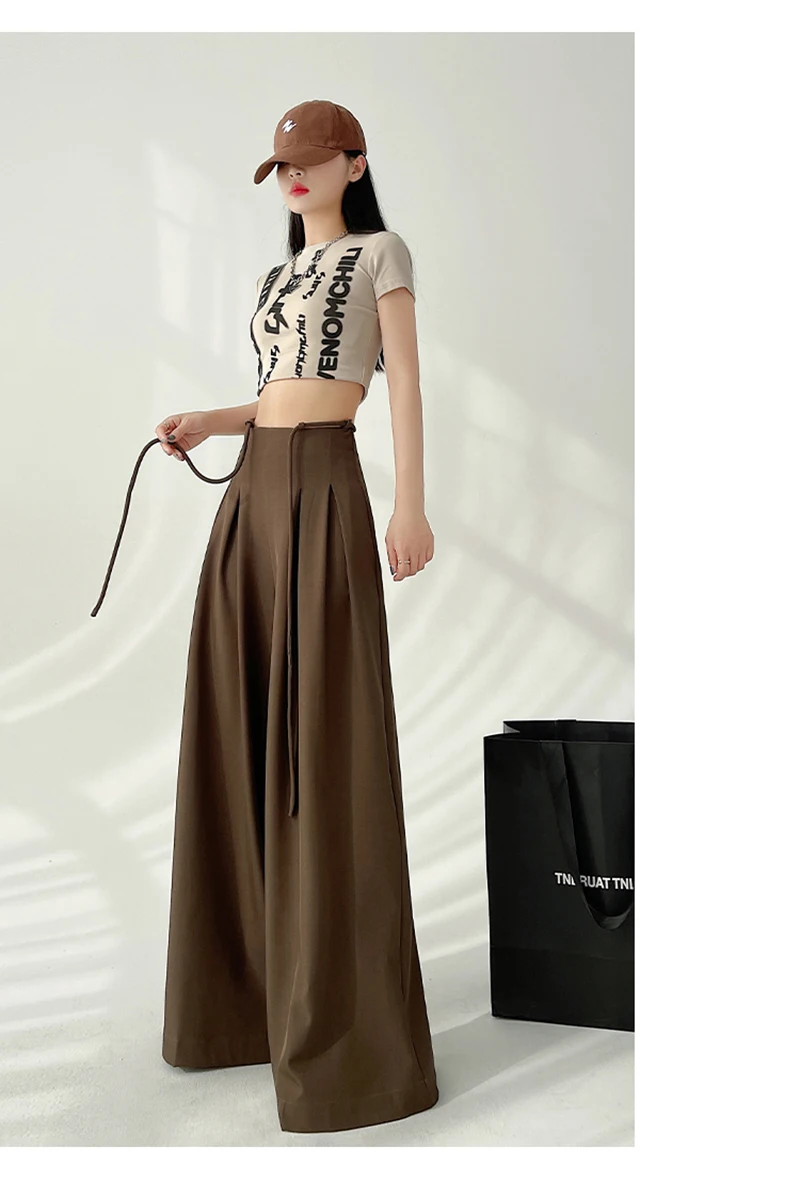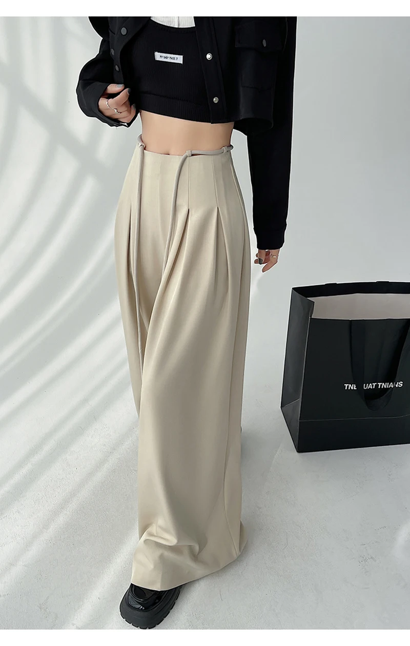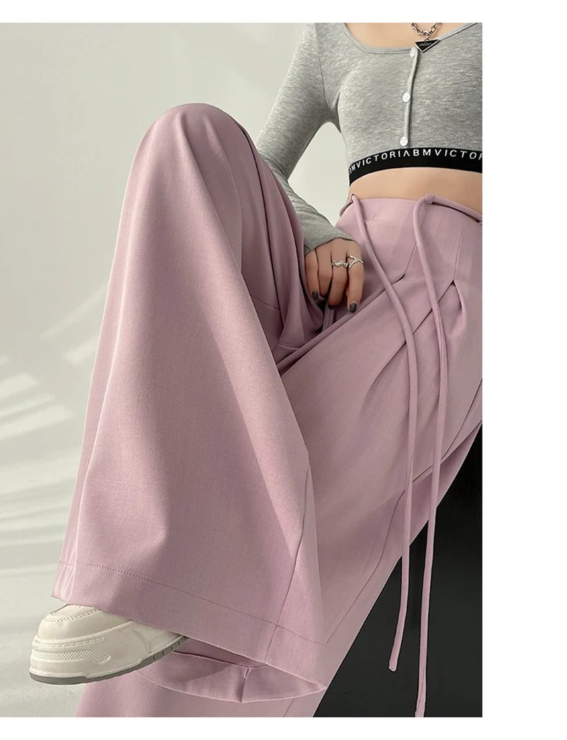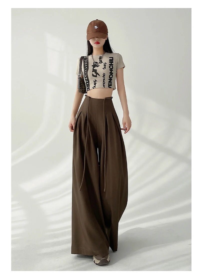 MEXZT Streetwear Wide Leg Pants Women Korean Black High Waist Suit Pants Summer Fashion Elegant Lace Up Straight Trousers New