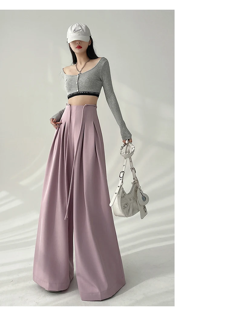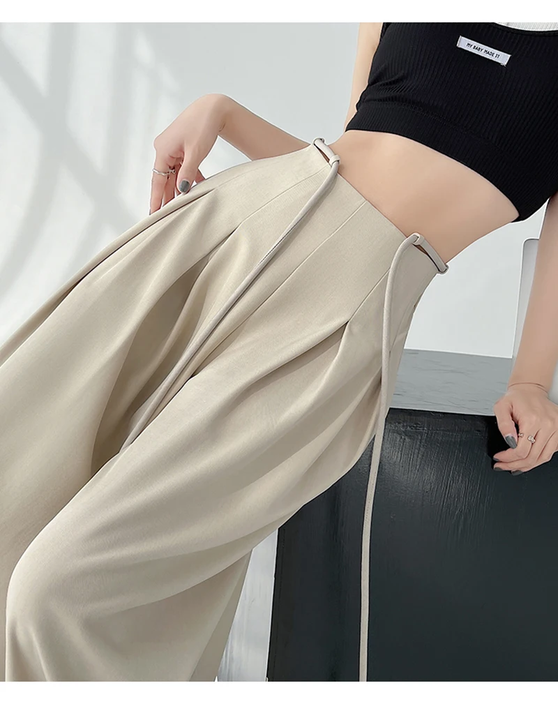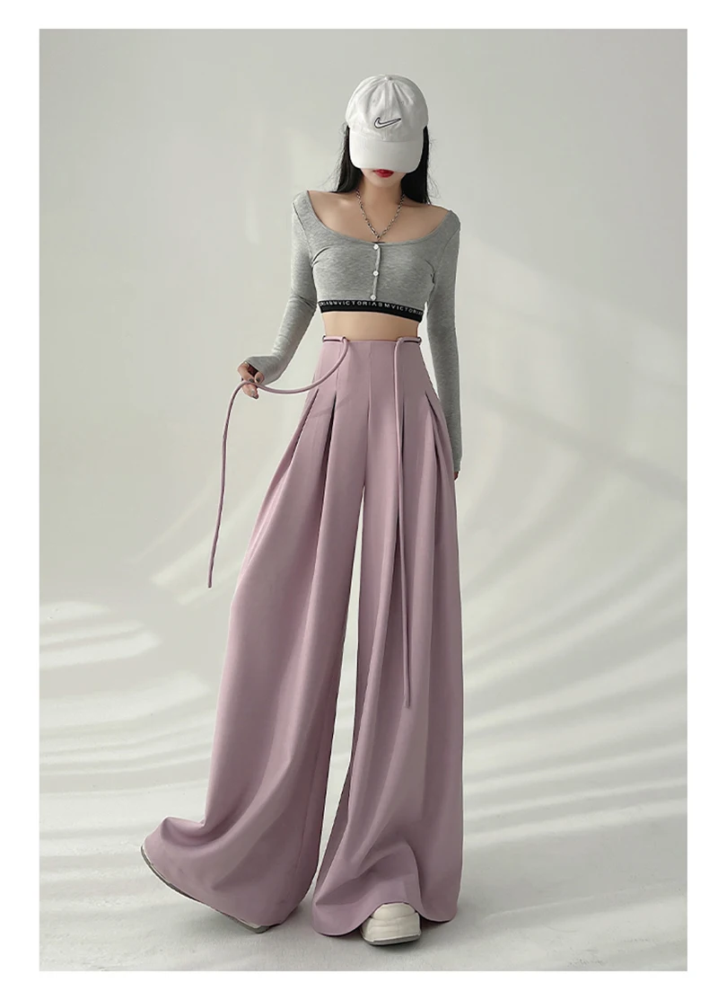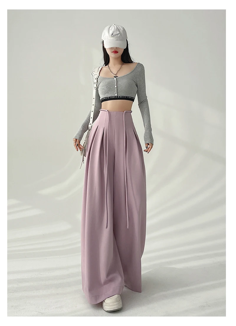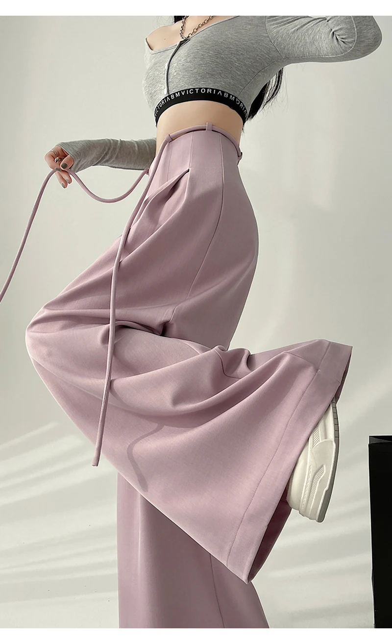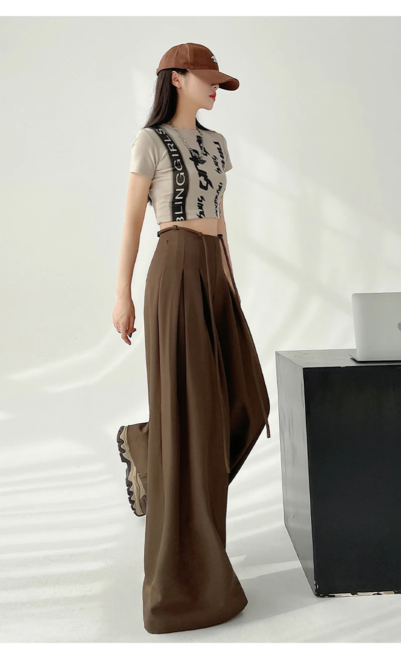 MEXZT Streetwear Wide Leg Pants Women Korean Black High Waist Suit Pants Summer Fashion Elegant Lace Up Straight Trousers New