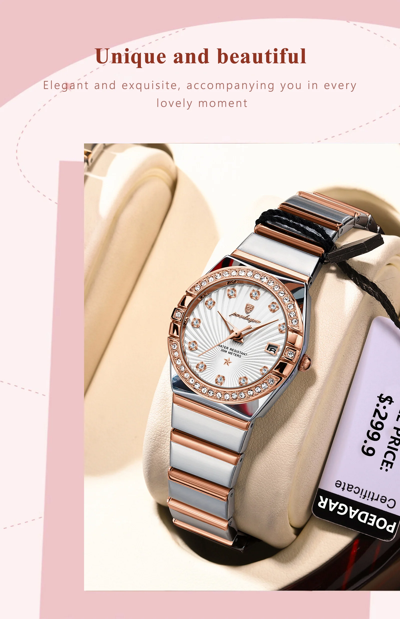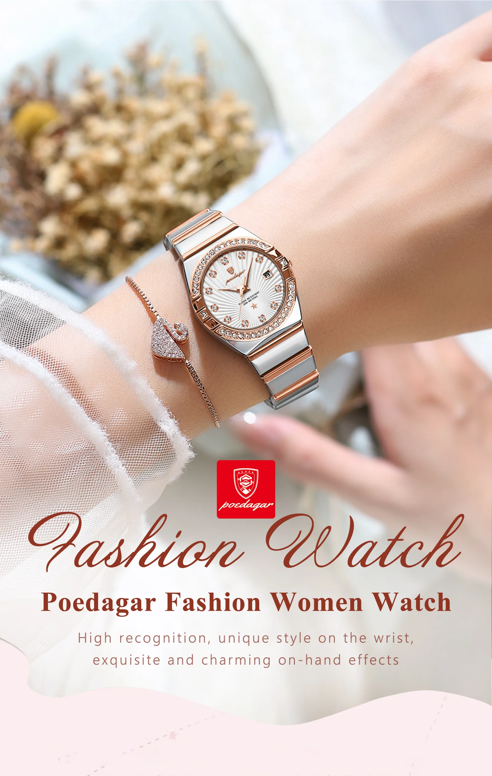 POEDAGAR Luxury Woman Wristwatch Waterproof Luminous Date Stainless Steel Watch For Ladies High Quality Quartz Women Watches+box