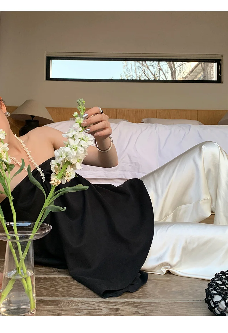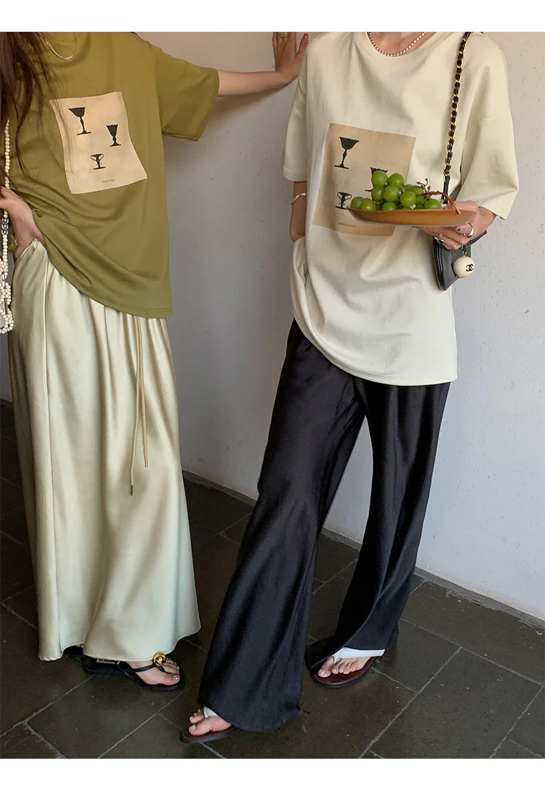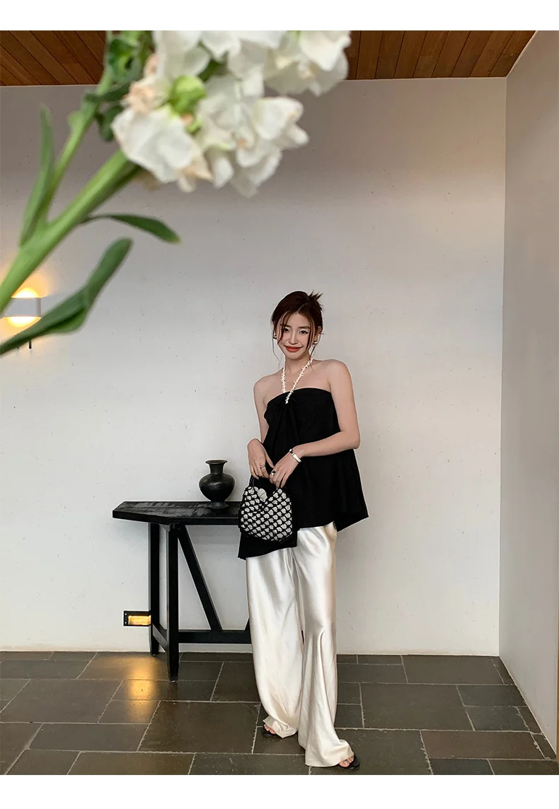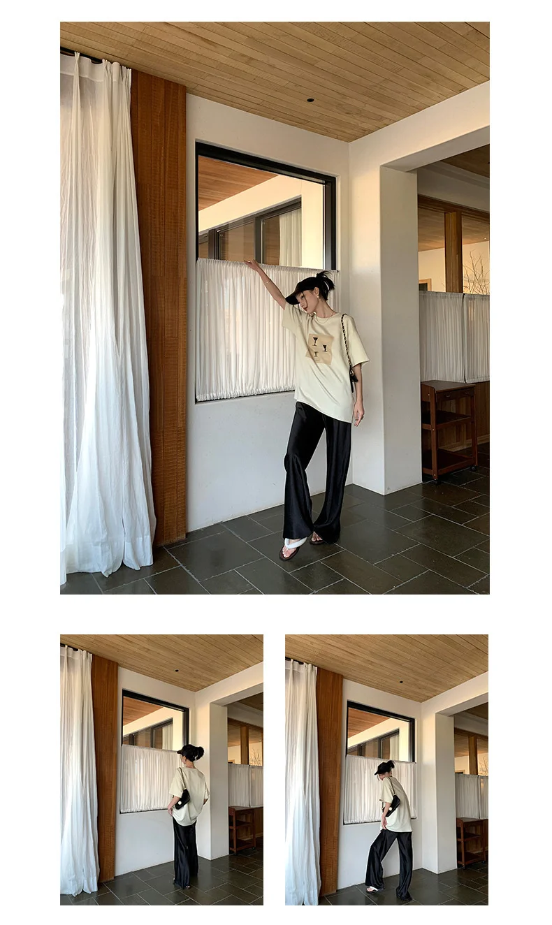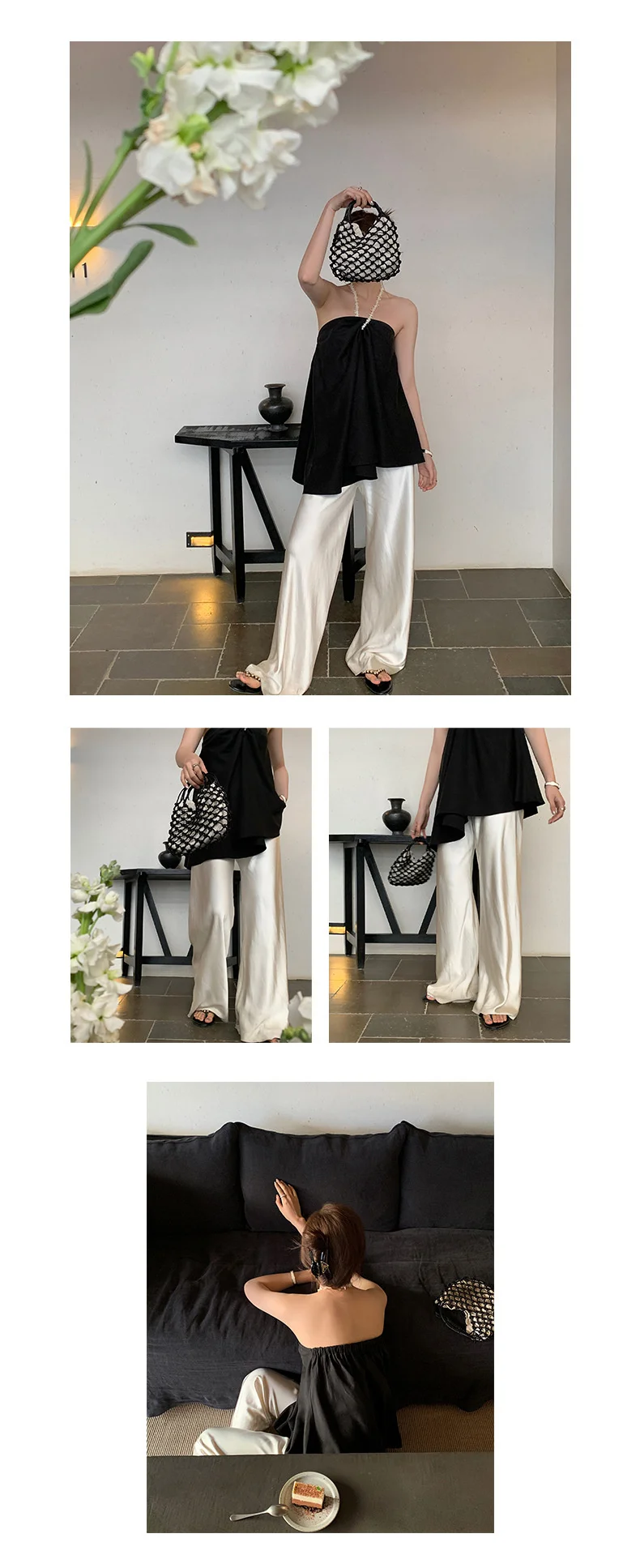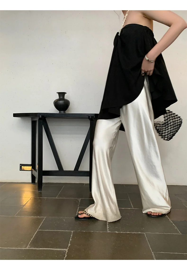Satin Wide Leg Pants Long Floor Casual Pants Women’s Summer