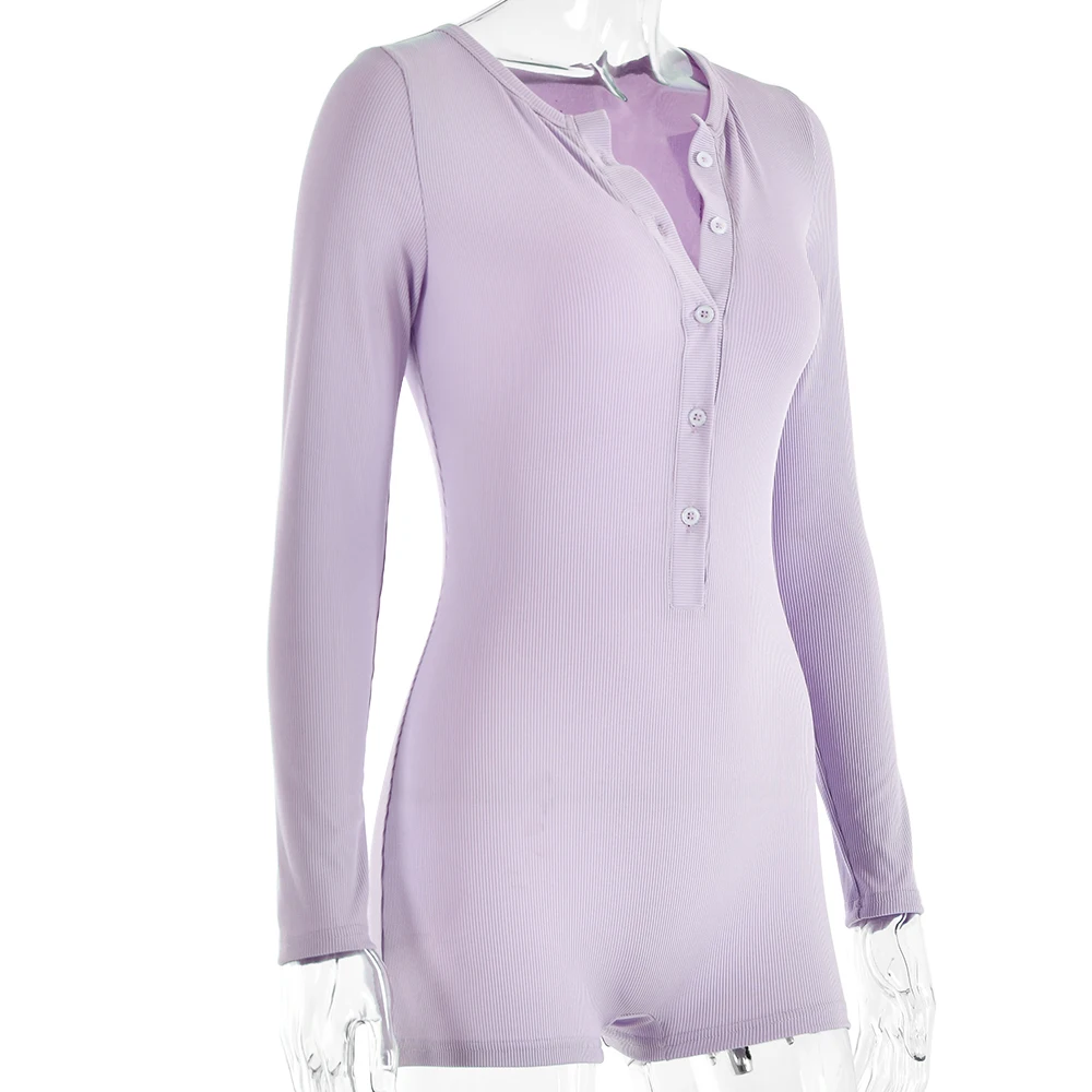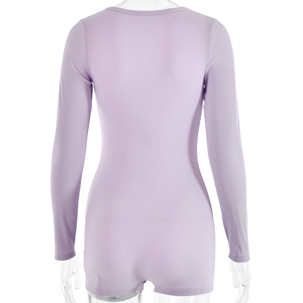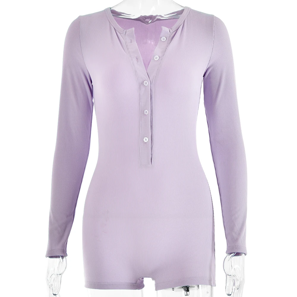 Sibybo Basics Ribbed Playsuit Casual Long Sleeves Button Top Fashion Solid Color High Waist Skinny Playsuit Autumn Women Clothes