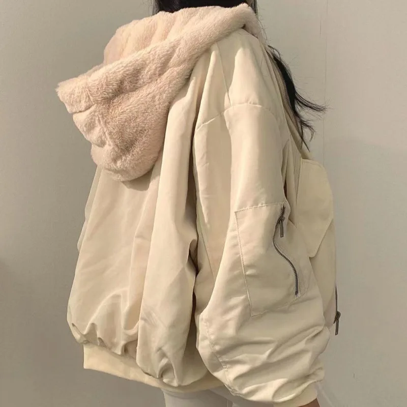 Winter Thicken Warm Parkas Women Oversized Kawaii Double Sided Hooded Coat Ladies Korean Fashion Casual Loose Zip Up Jackets