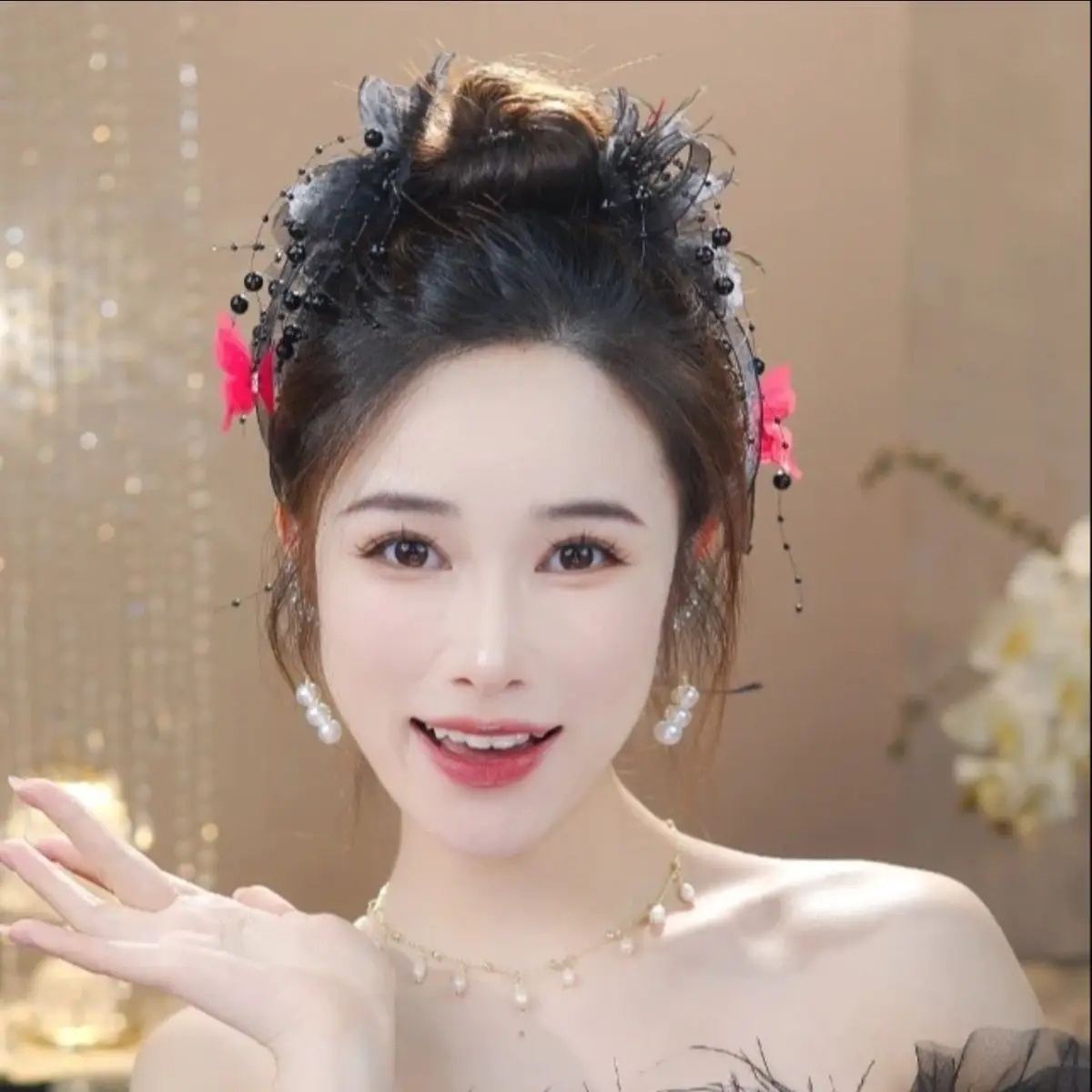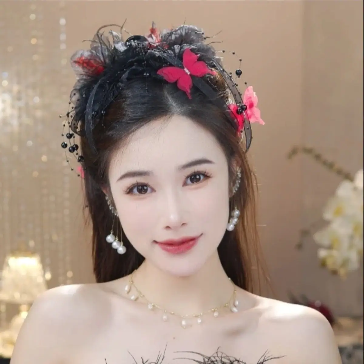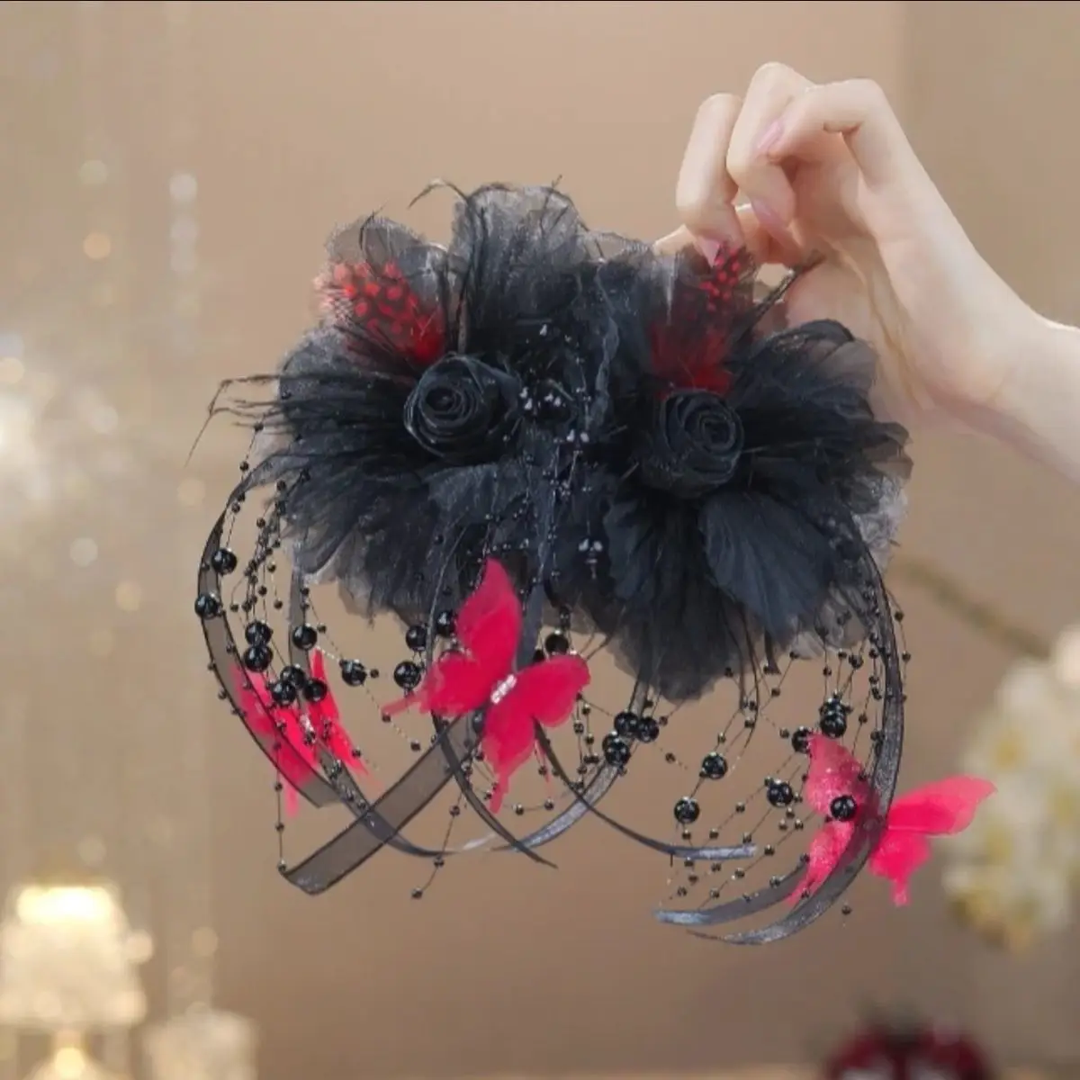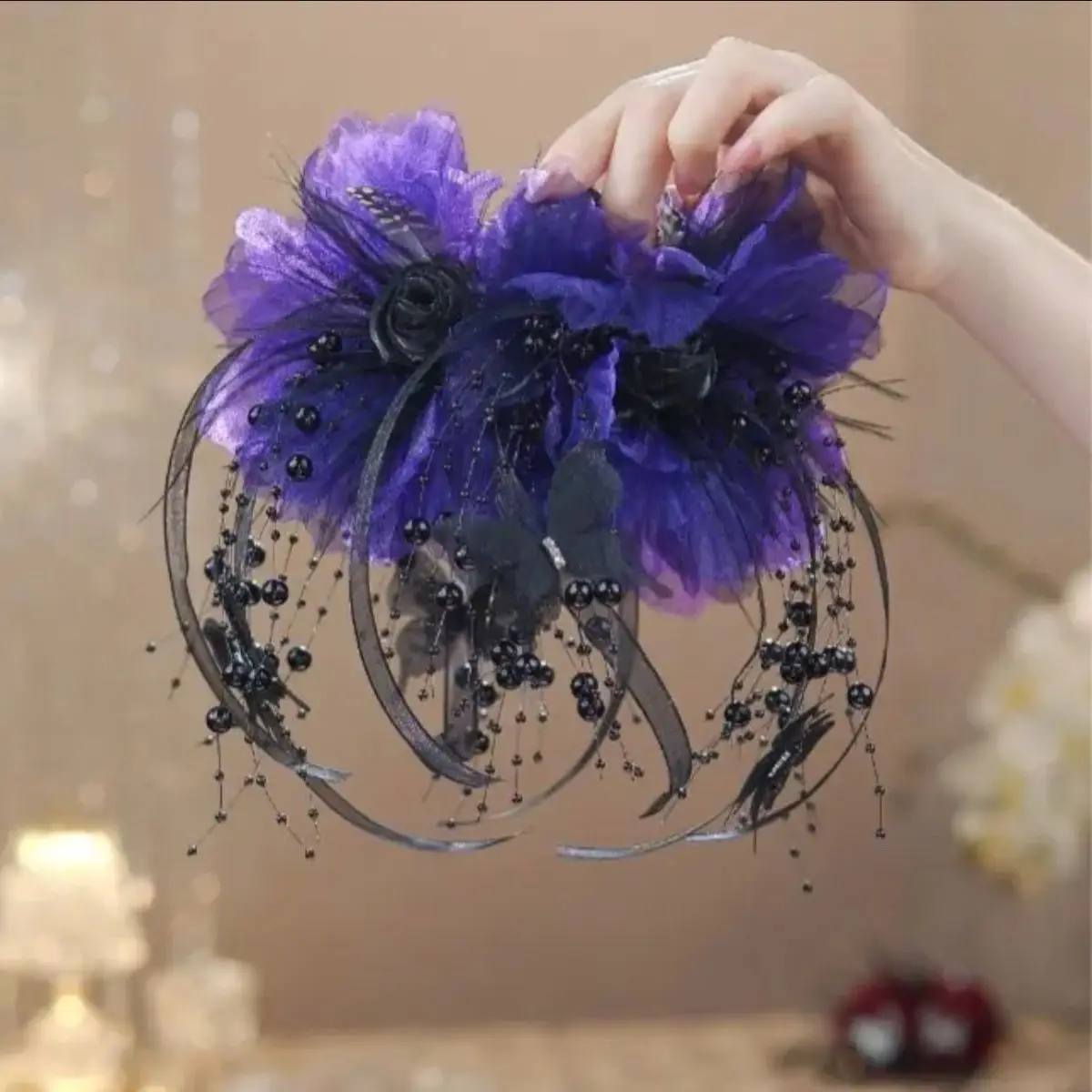 Women Luxury Autumn Winter French Style Flower Bead Feather Tassel Hair Accessories Female Hairpin Shark Hair Claw Headdress